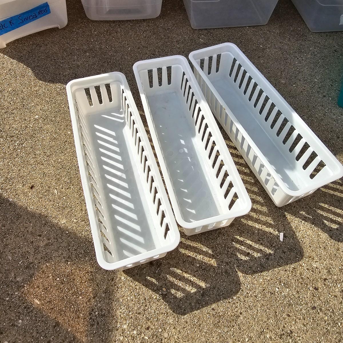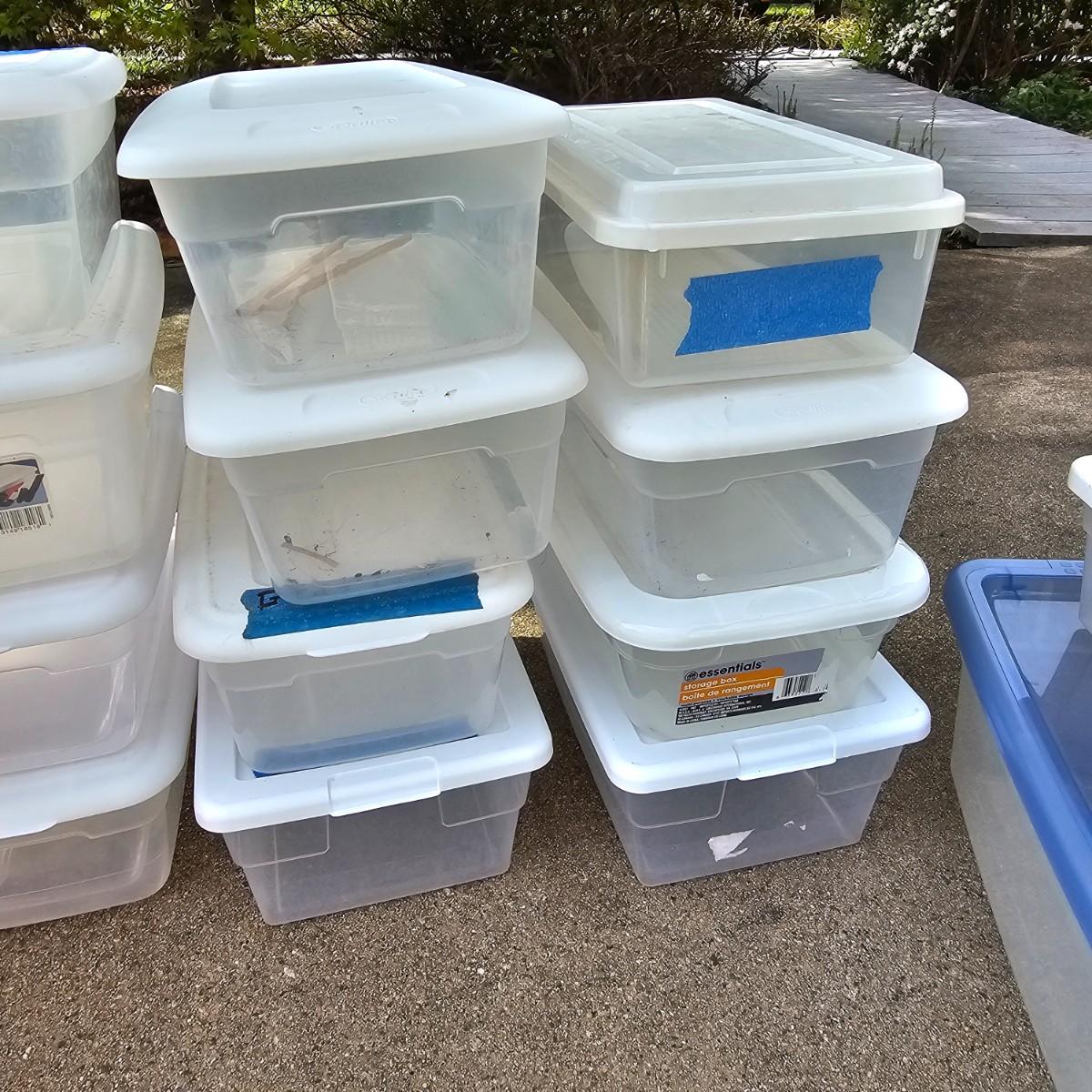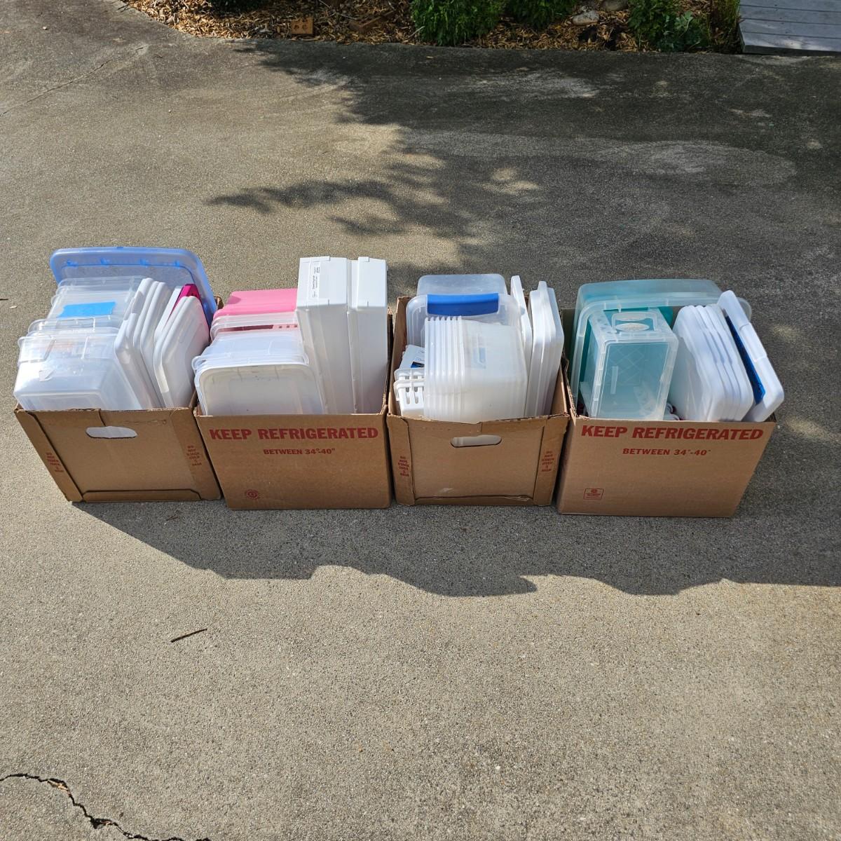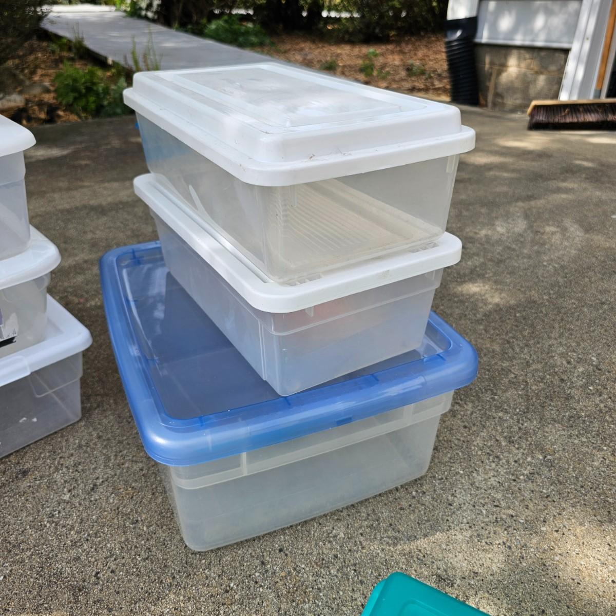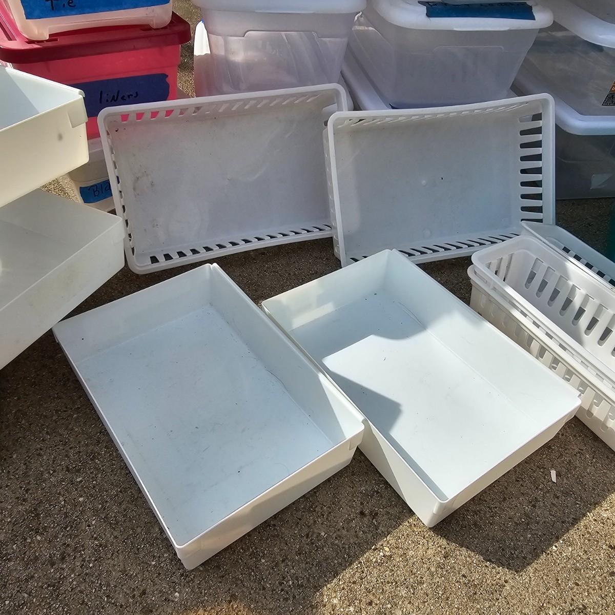 35 plus containers and lids for shoes and other items. Sterlite and other companies. Also some drawer organizers and dividers. See photos for details. Shipping available.