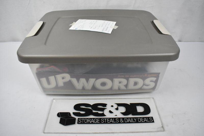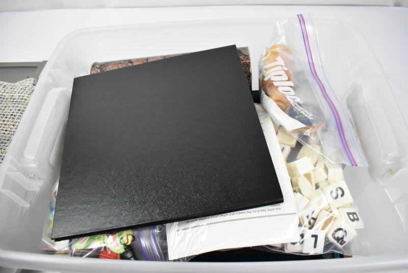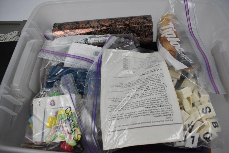 Clear Sterilite Bin (25 qt size) of Various Games in various stages of complete