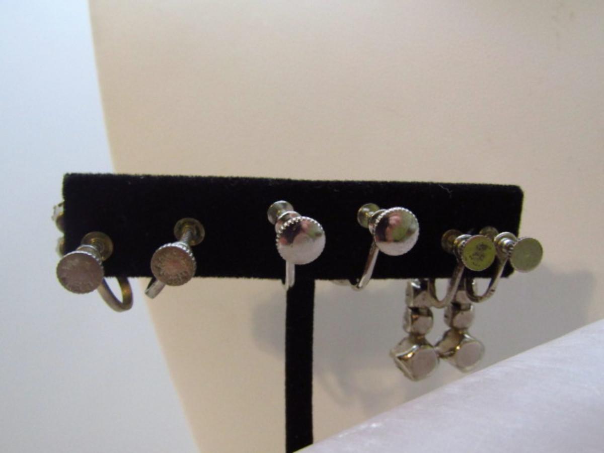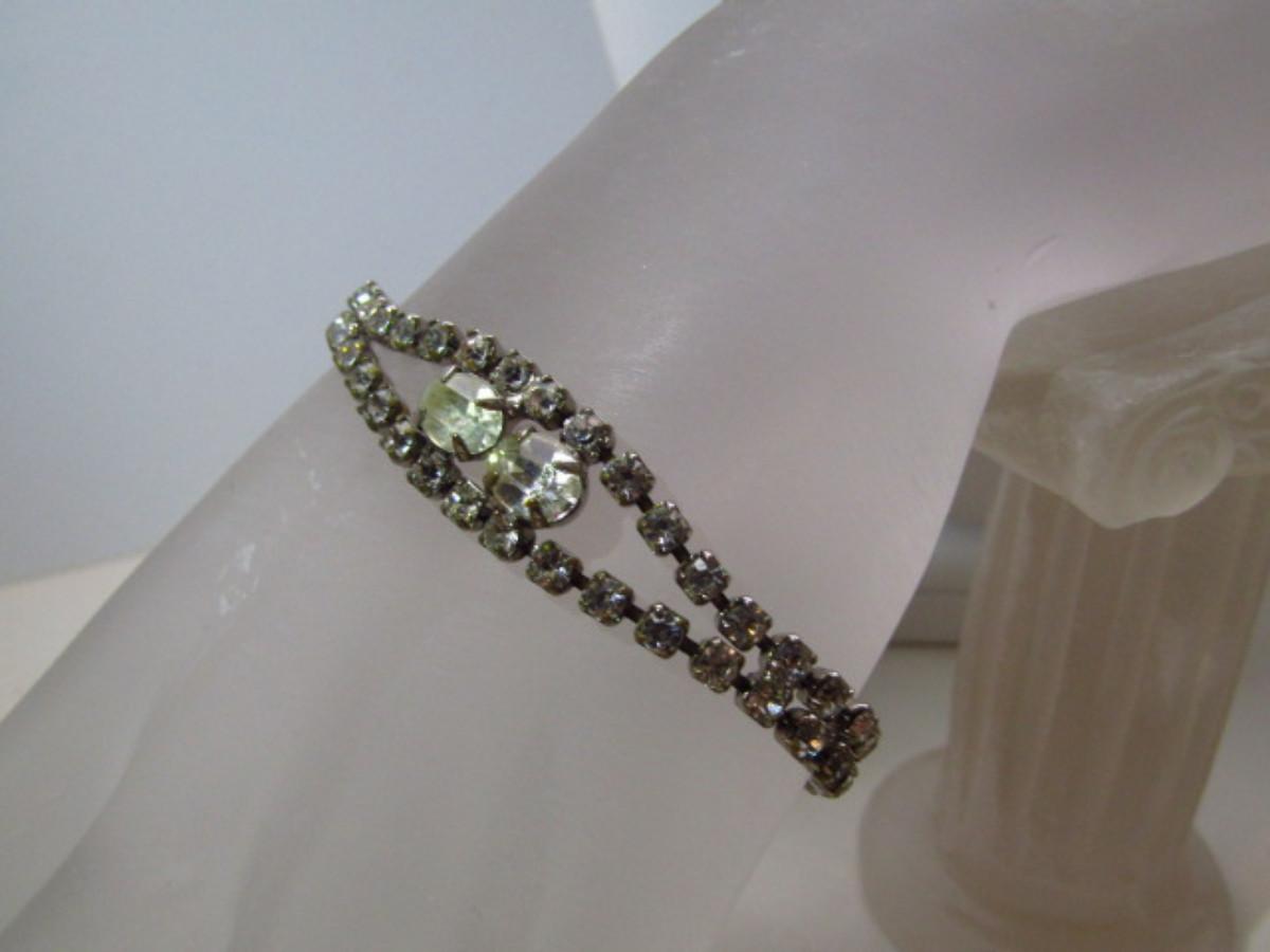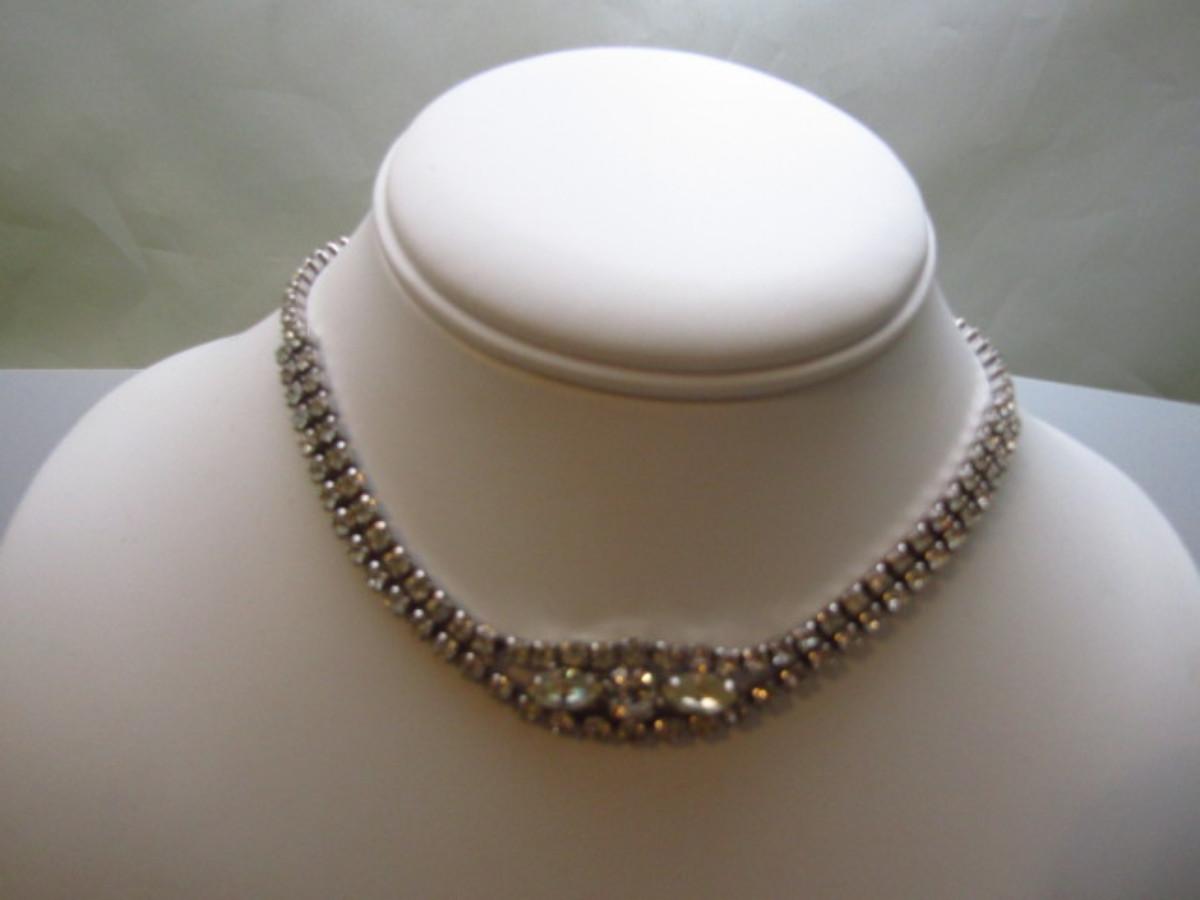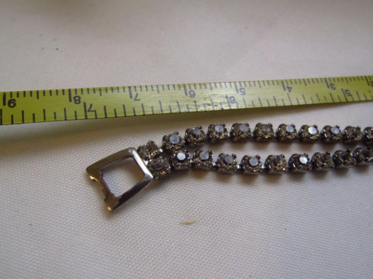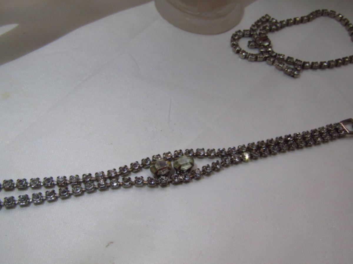 Clear Stone Fashion Jewelry Set (#6). Two necklaces, one bracelet, 3 pairs of earrings (clip-on and screw back), and brooch.