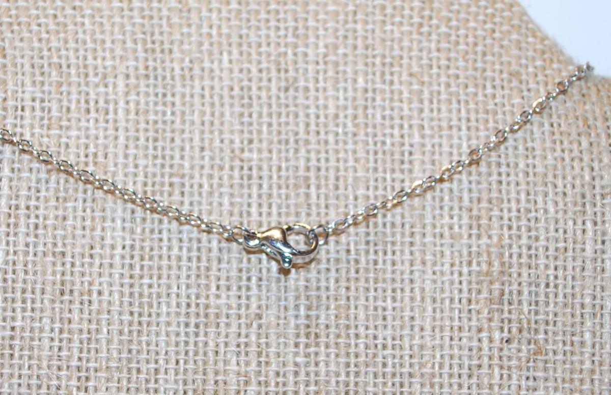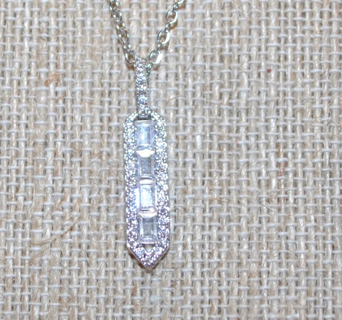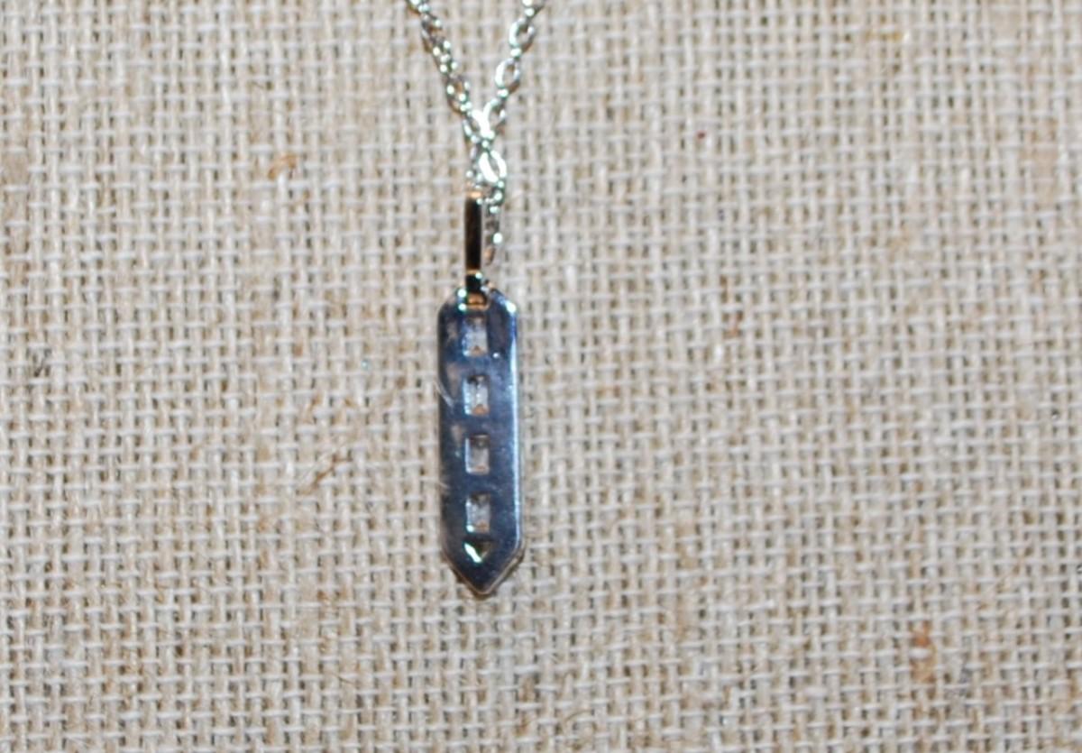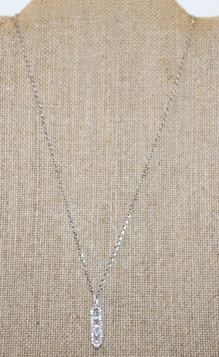 Clear Stones Parallelogram PENDANT (1¼" x ¼") on a Silver Tone Necklace Chain 17" L