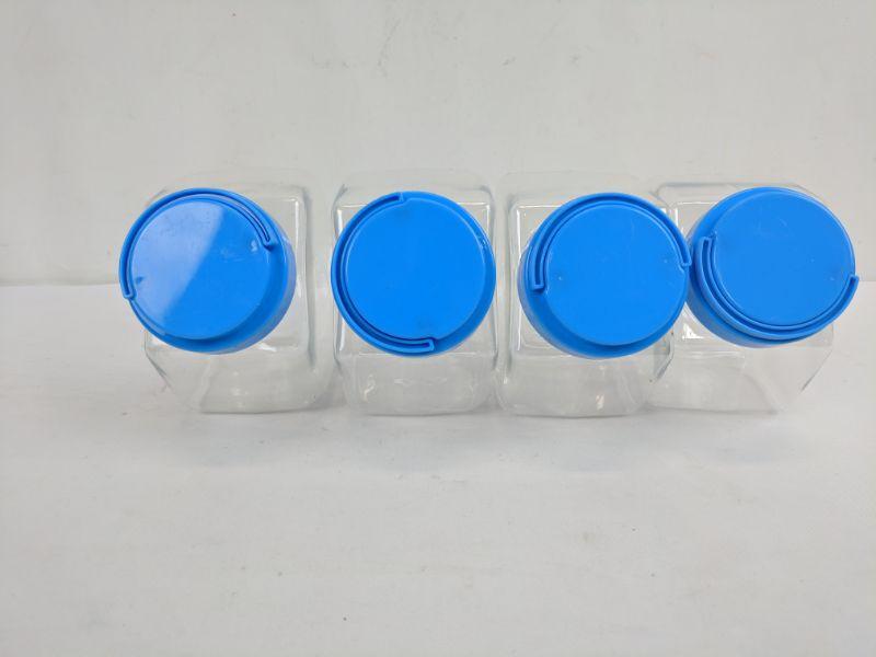 Clear/Blue Plastic Small Containers W/ Lids, set of 4 - New