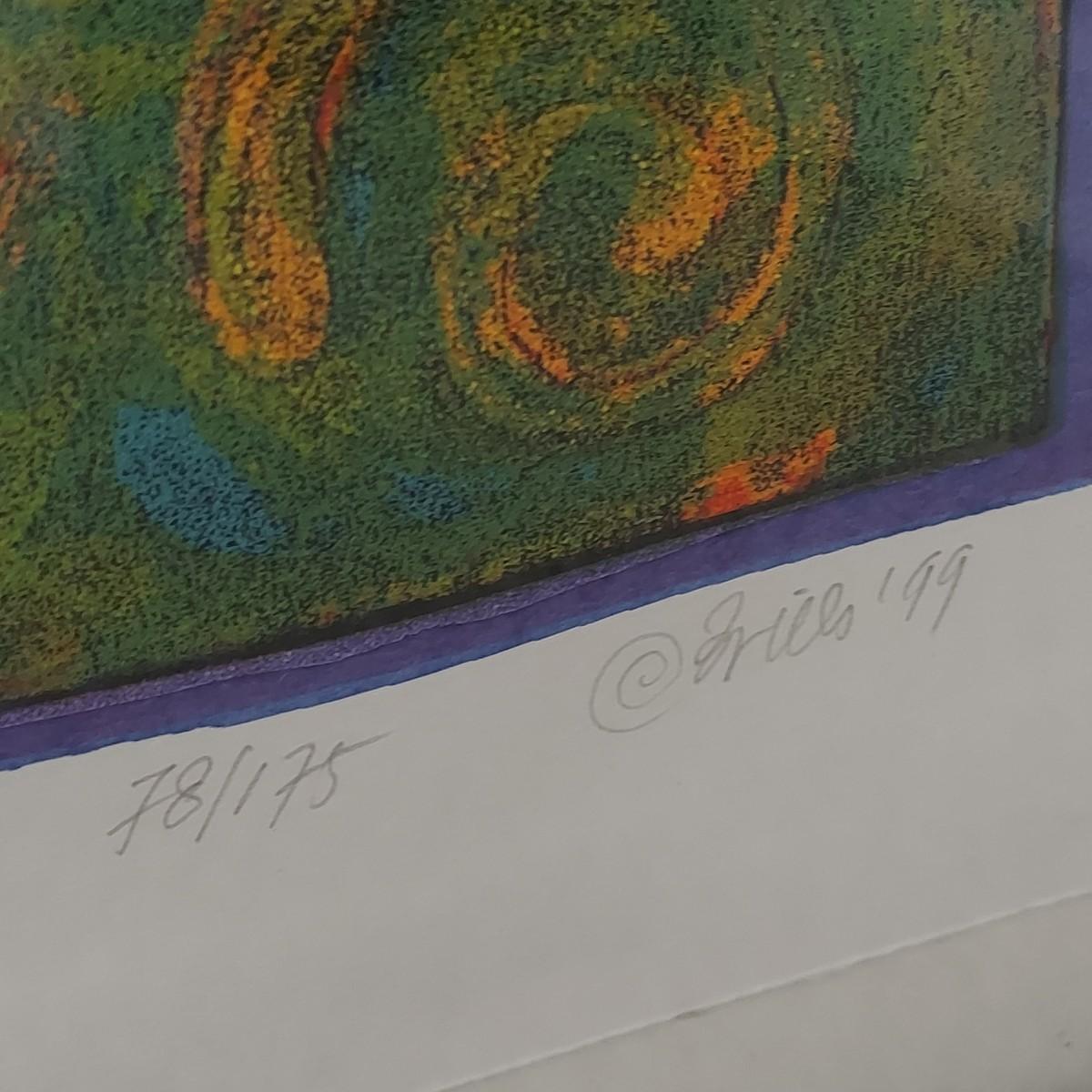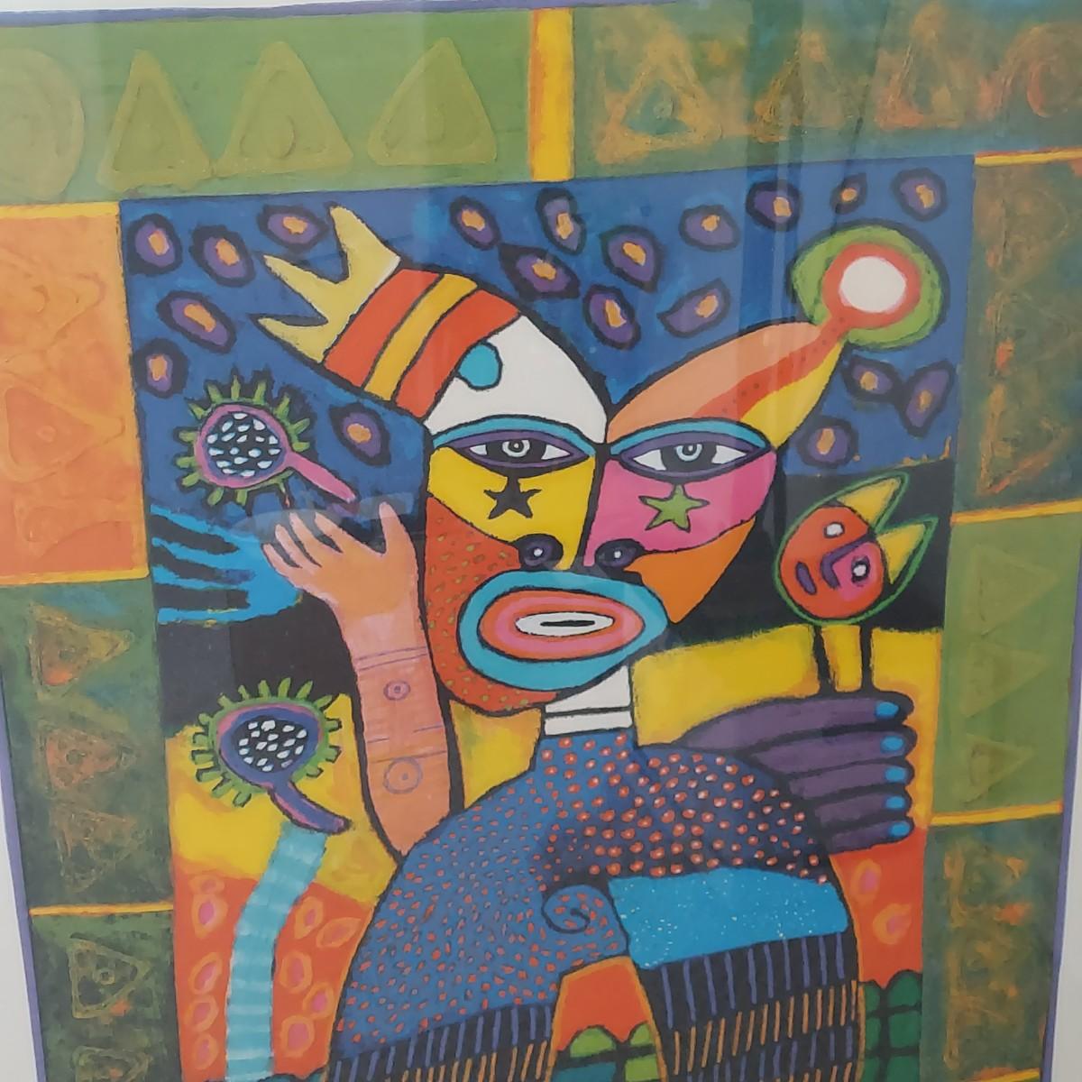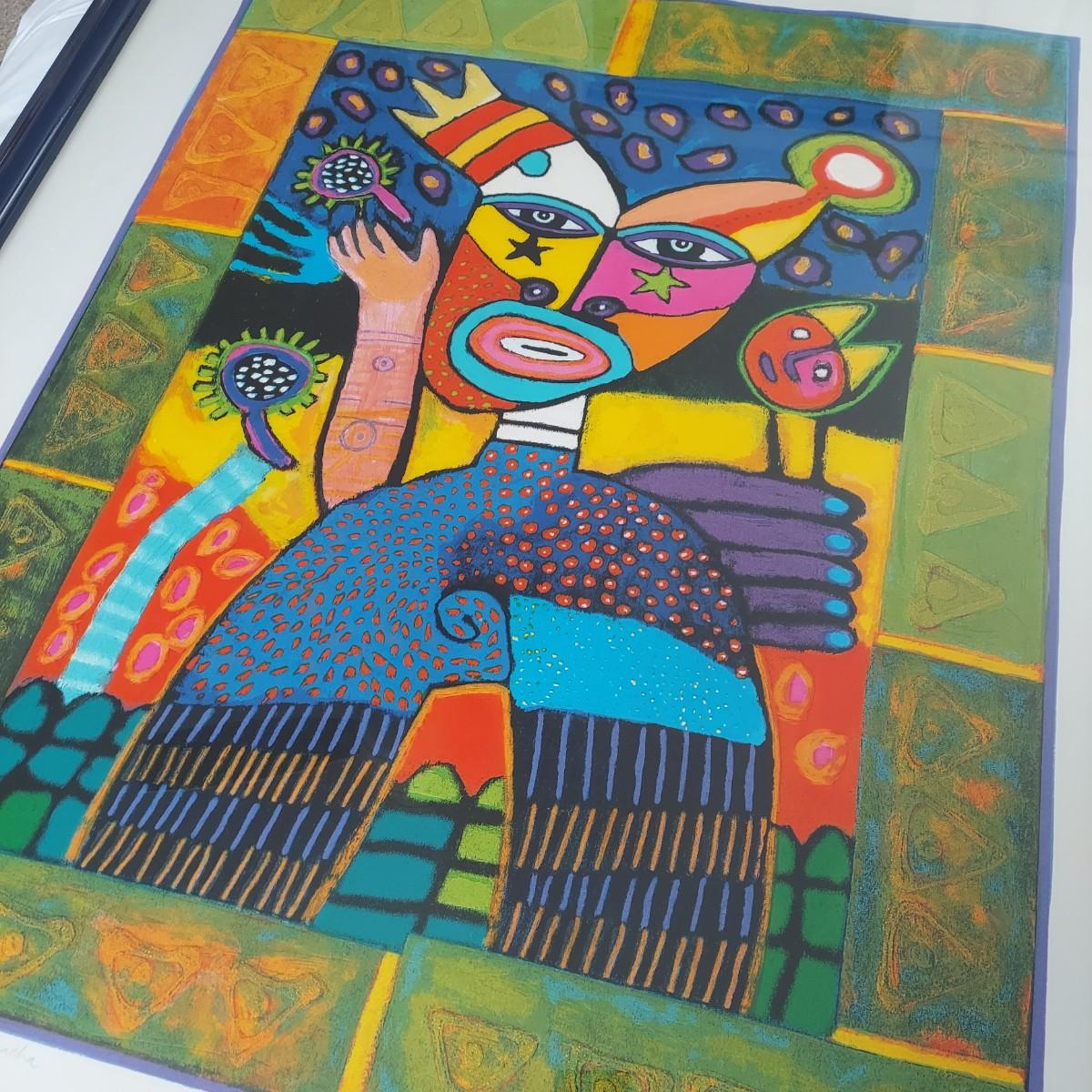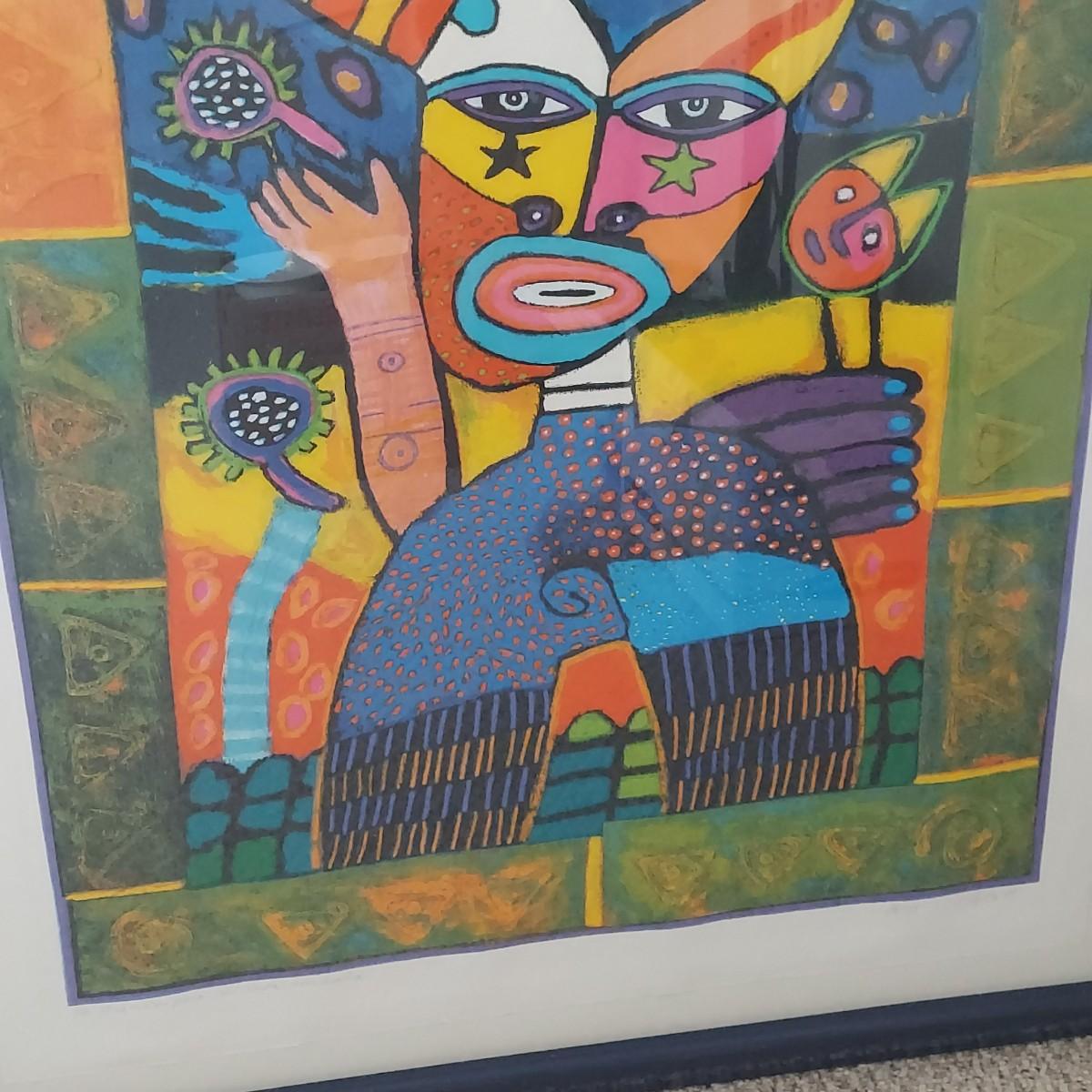 Large piece of art is framed under glass in a mat-free style. The wooden frame measures 39” x 46"H. Also includes a paperback coffee table book about Briels’ art. Please see photos for details. Shipping available. Shipping certain items can be costly. We suggest contacting our preferred local shipping provider, Postage Express, with dimensions and getting an estimate before bidding: (828) 255-9250 or shipping@postageexpressnc.com