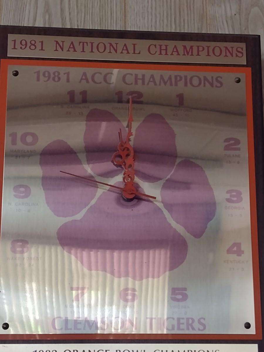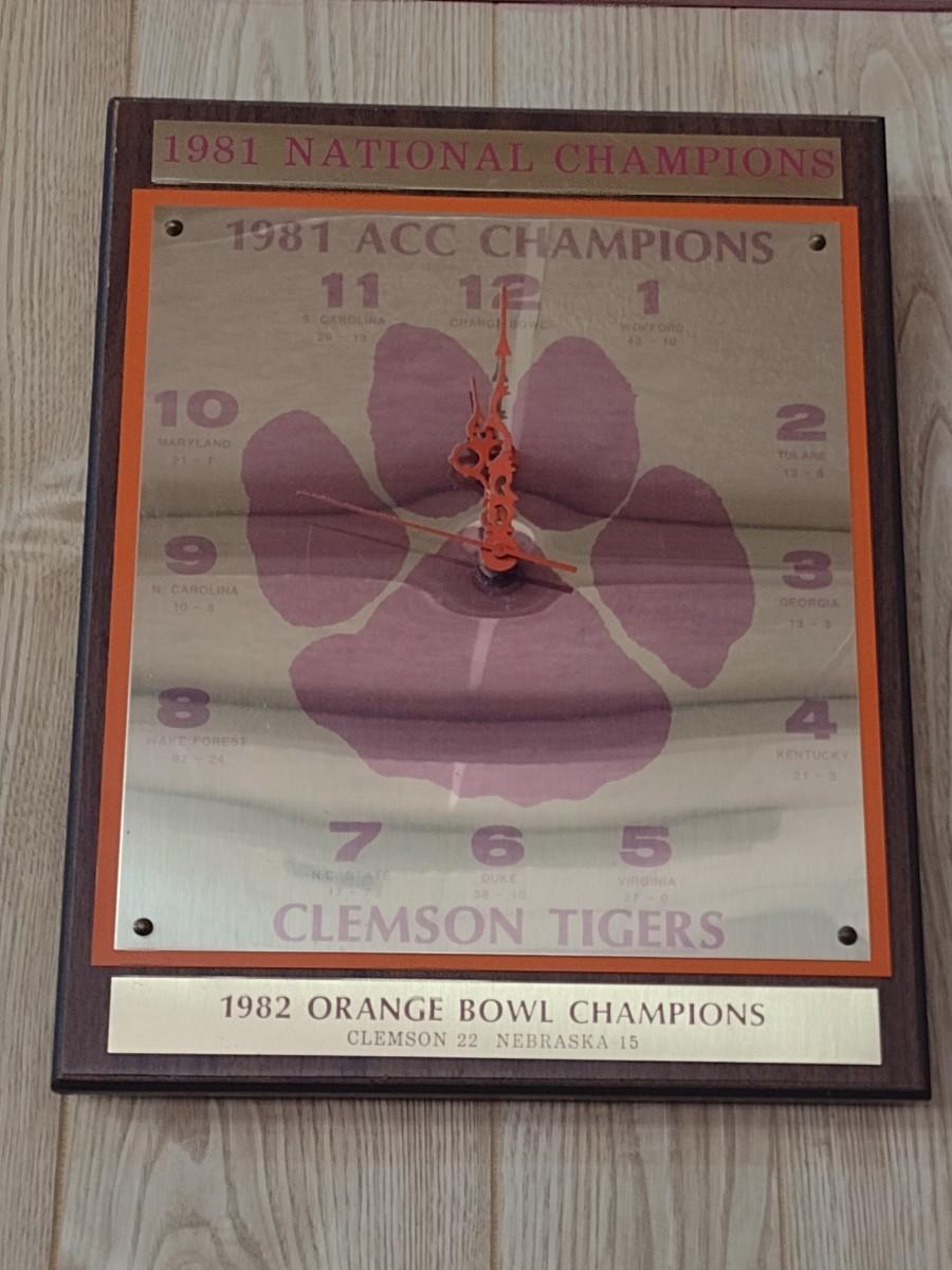 Clemson Tiger 1981 ACC Champions 1982 Orange Bowl vs. Nebraska Wall Clock