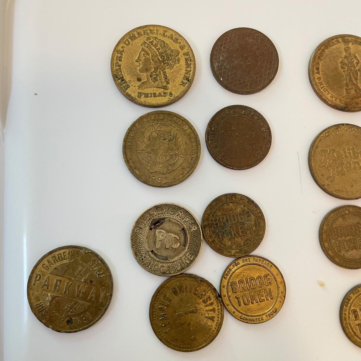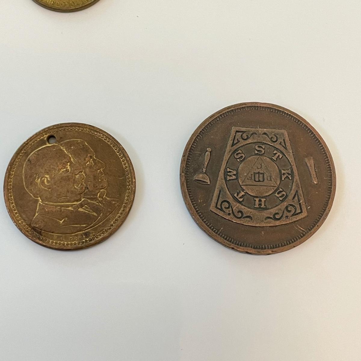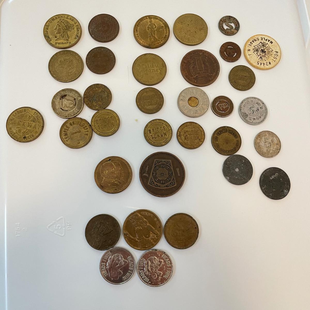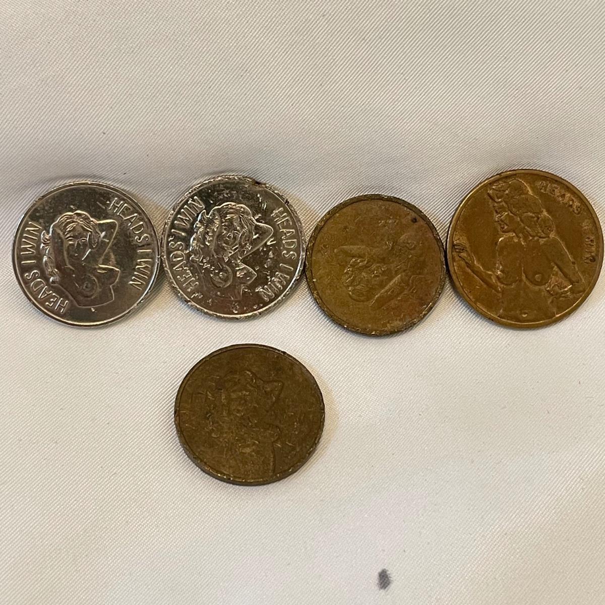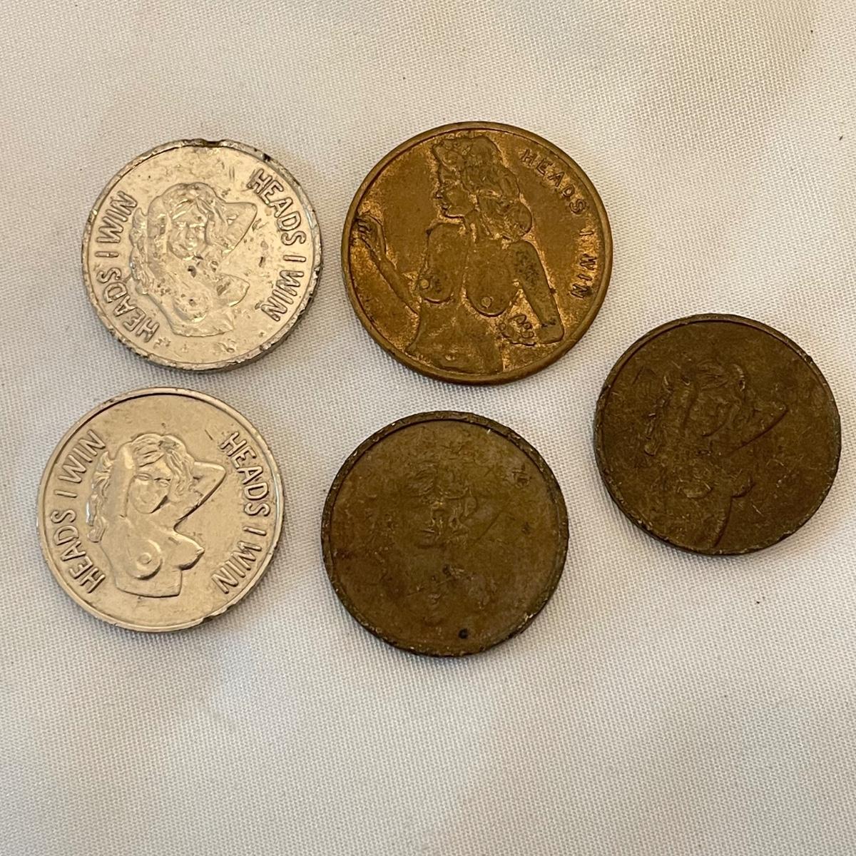 Lot has over 30 fun, interesting coins and tokens. Featuring five risqué tokens, (three are “Heads I win, Tails you lose”), a Grover Cleveland campaign token and a Masonic penny. Lot includes several other collectible tokens. All are metal except the off-white Post #2445 drink token which appears to be plastic. See images. Shipping available. All sales are final. No returns or refunds. Please bid accordingly.