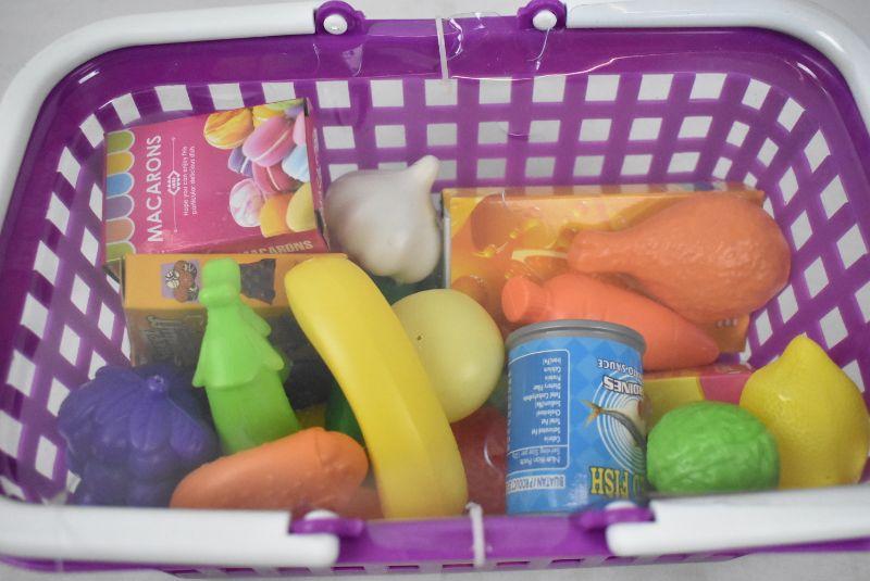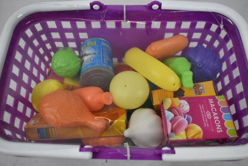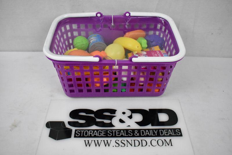 Click n' Play 33 Pc. Kids Pretend Play Grocery Shopping Play Toy Food Set, Fruit and Vegetable with Basket - New
