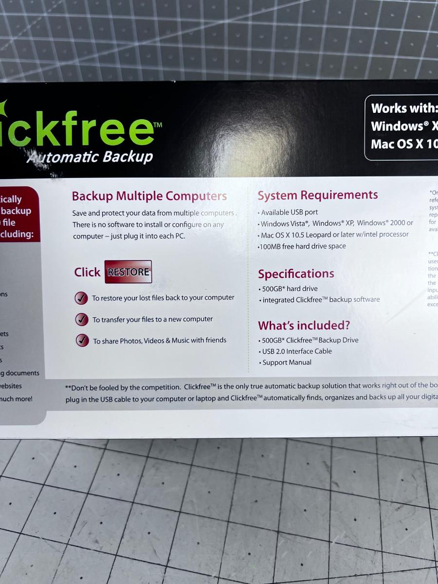 Clickfree Automatic Backup Solution -  500 GB NEW in the Box