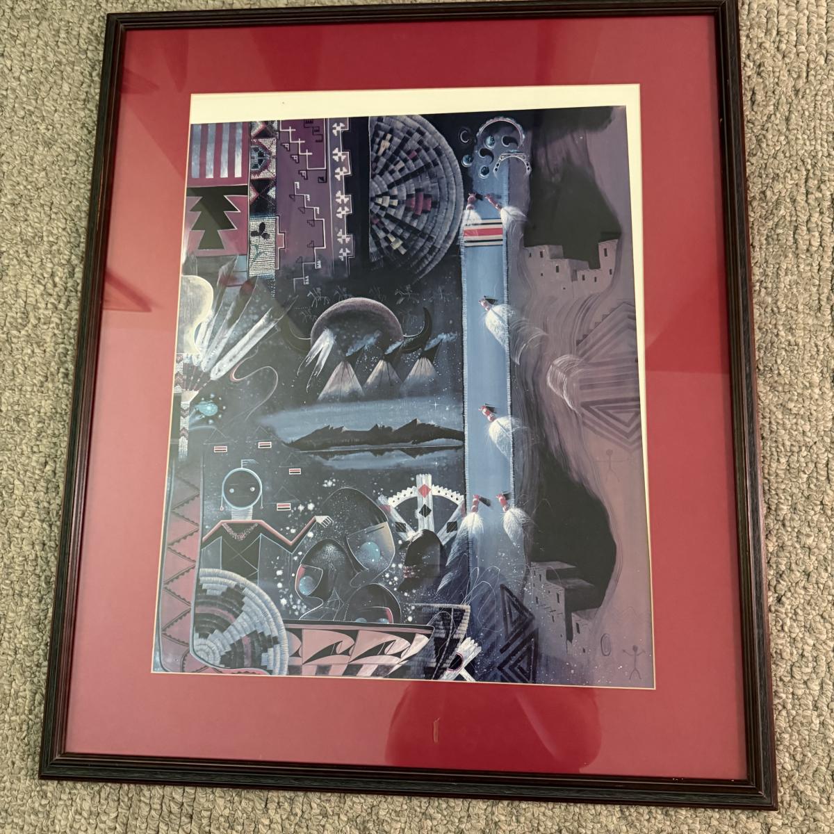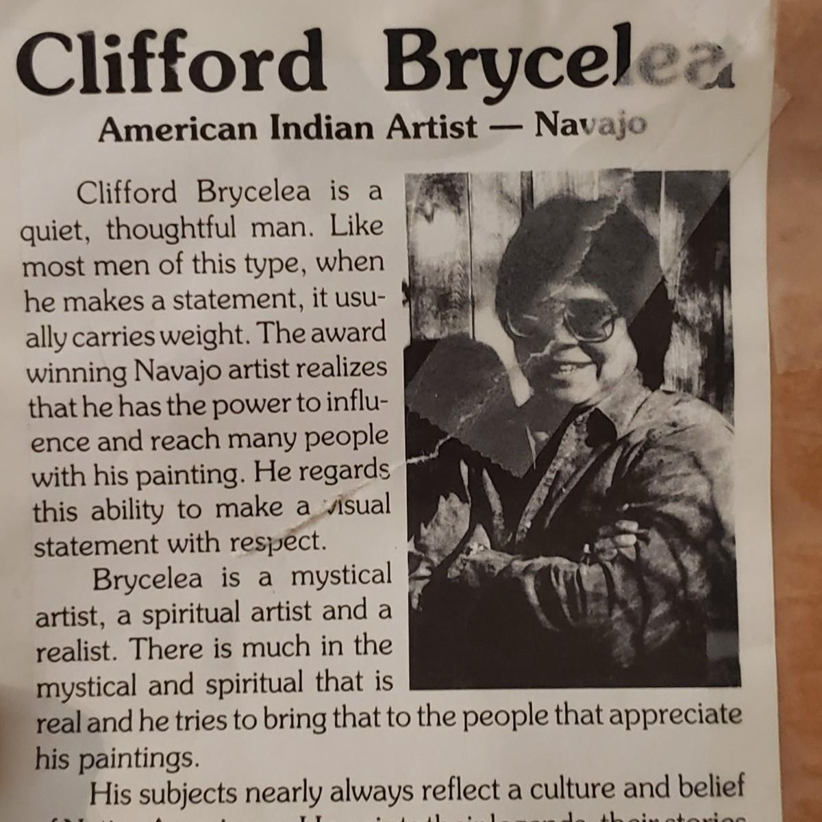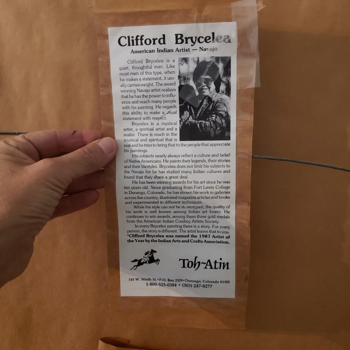 This is a wooden framed behind glass print by artist Clifford Brycelea. The print has fallen down behind the matting, see picture. The frame measures 28" x 33".