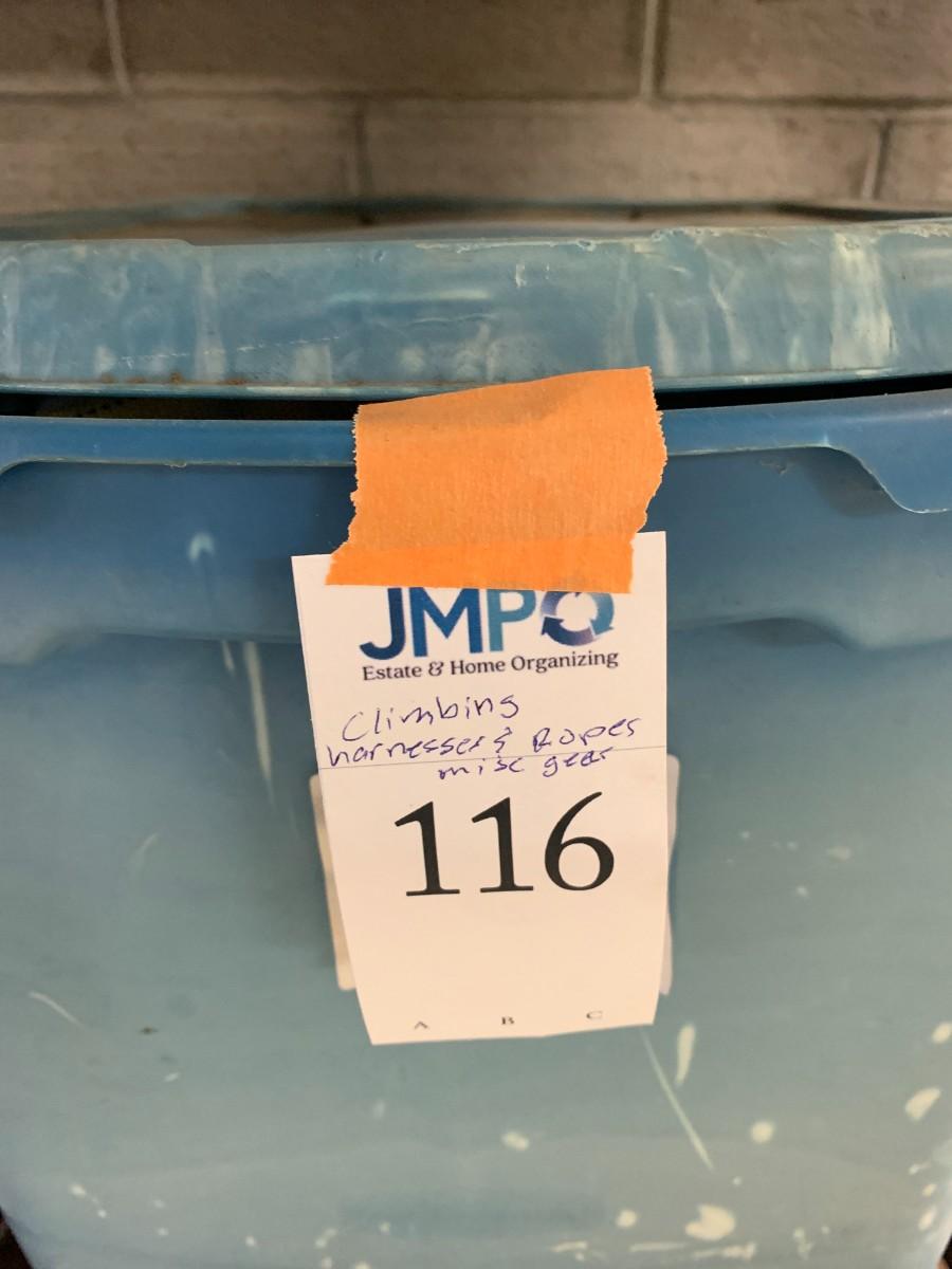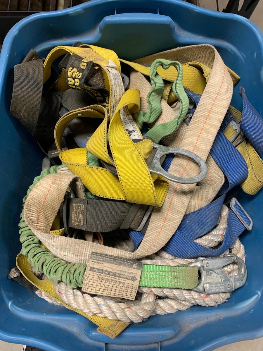 1 tub of harnesses and ropes, not checked for completeness or condition.