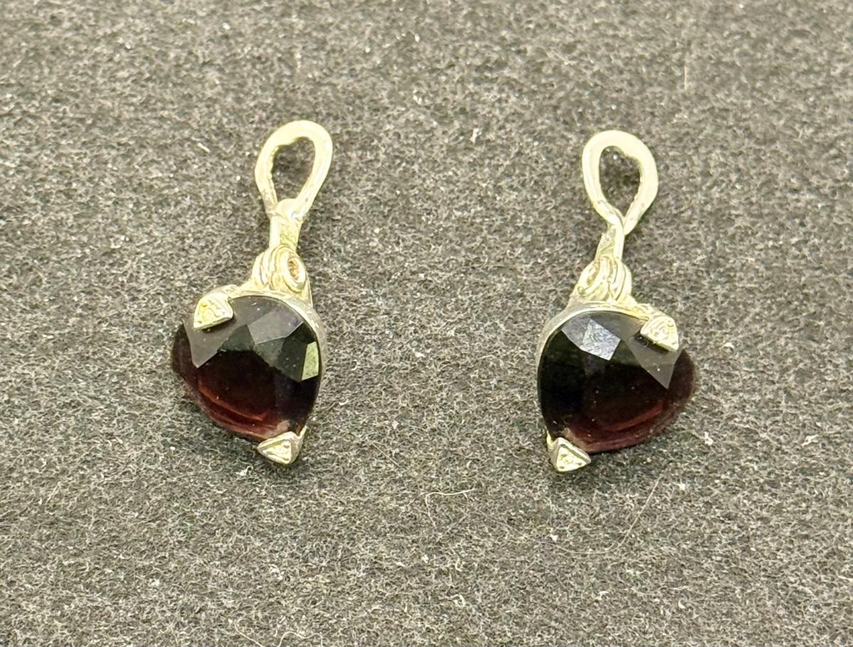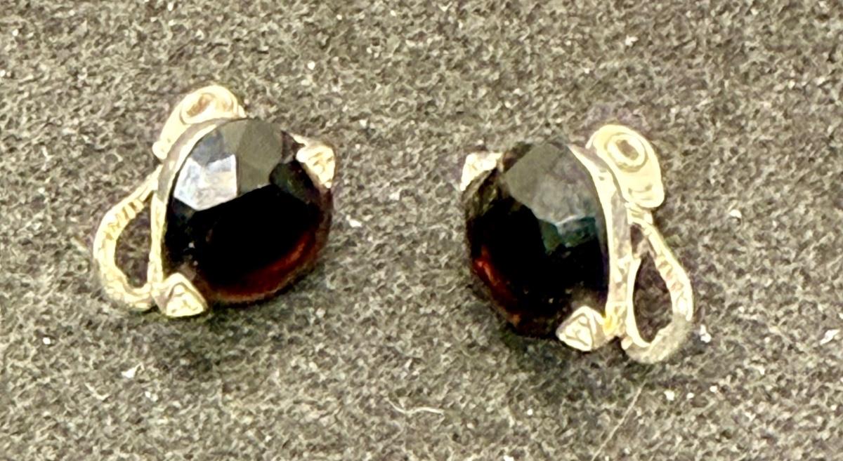 Goldtone metal with garnet-red stones. Nice condition.