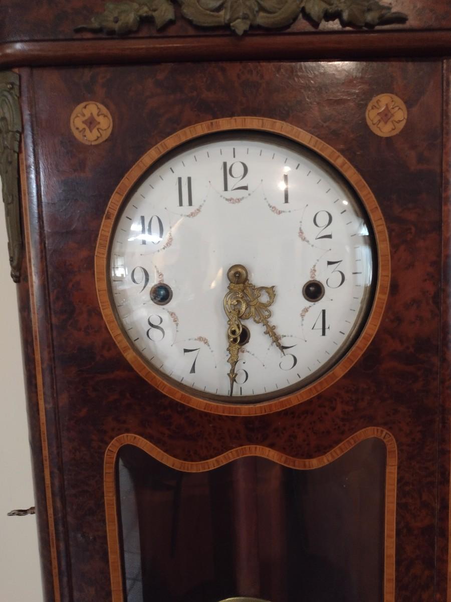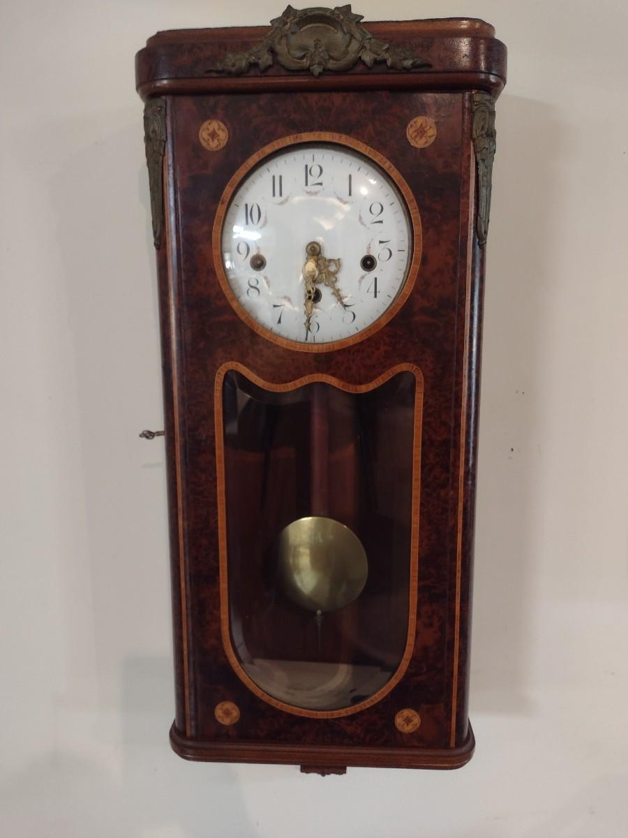 Antique French Burlwood Case Wall Clock with Inlay Marquetry