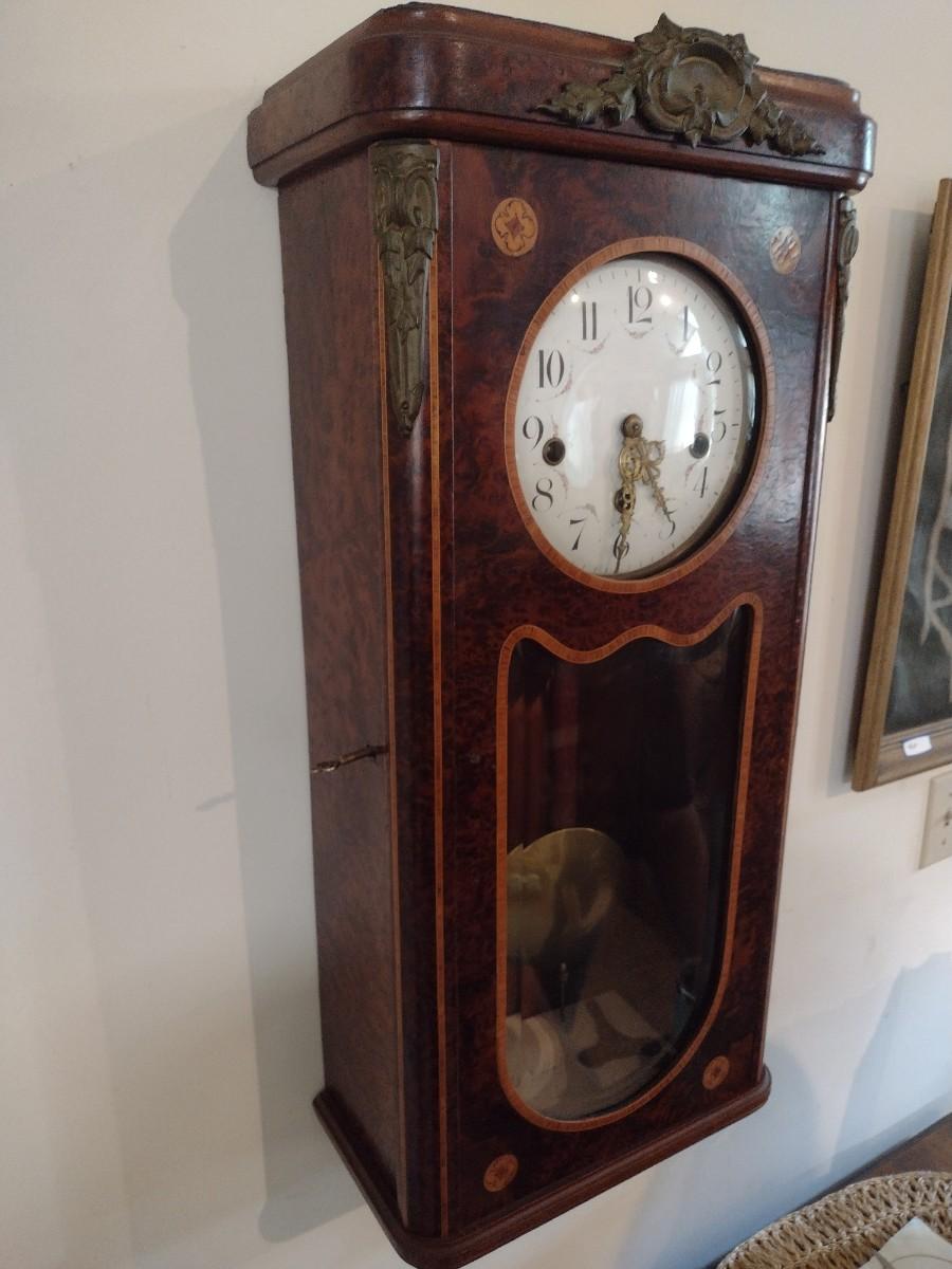 Antique Burlwood Case Wall Clock with Inlay Marquetry