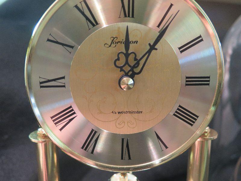 Westminster chiming clock, untested. Please read Terms and Conditions before placing a bid. Pick up is Friday, October 25th between 4 and 7, and Saturday, October 26th between 9 and 1. Props included in photos are not included in listing. All measurements are approximate. Comes from home with cats.