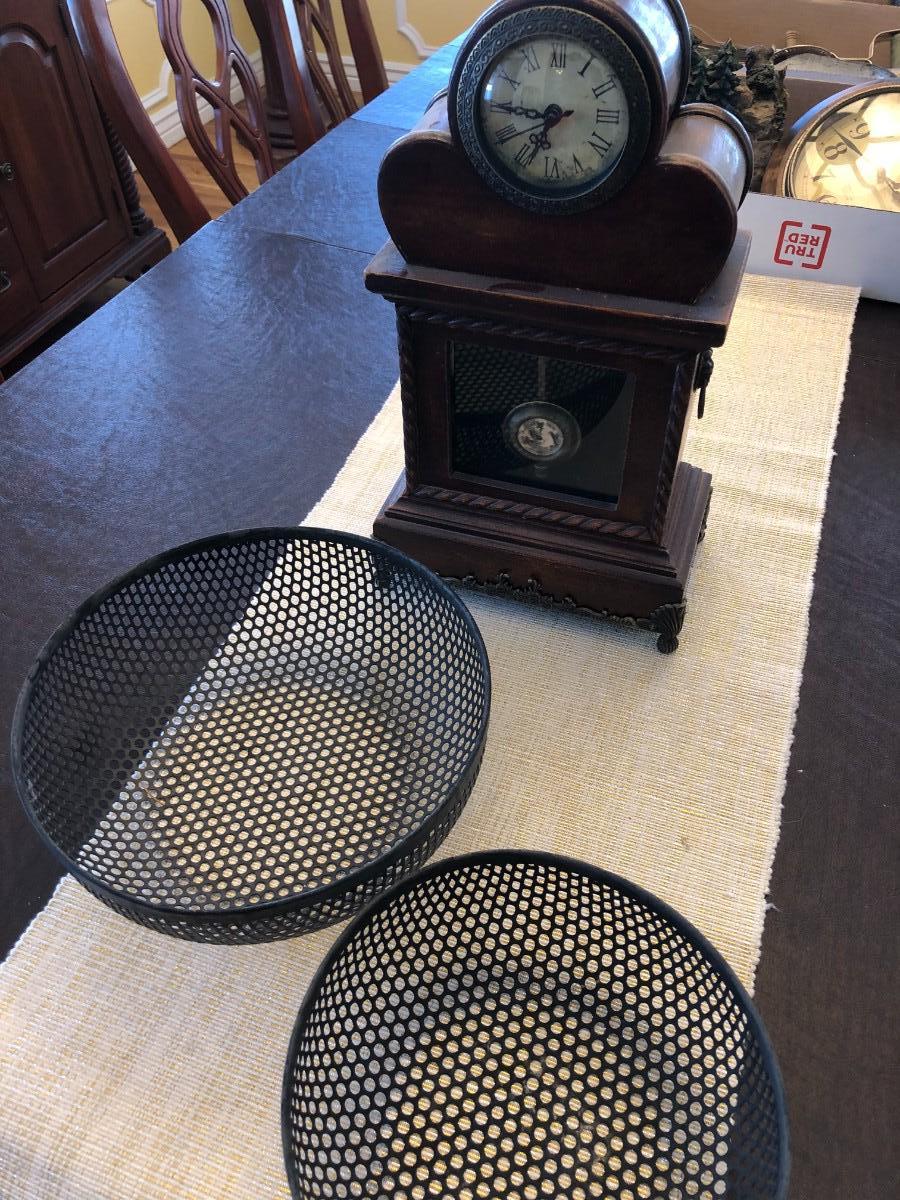 CLOCK AND TWO METAL BASKETS