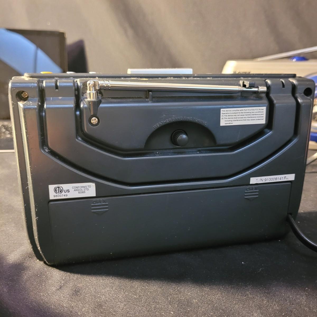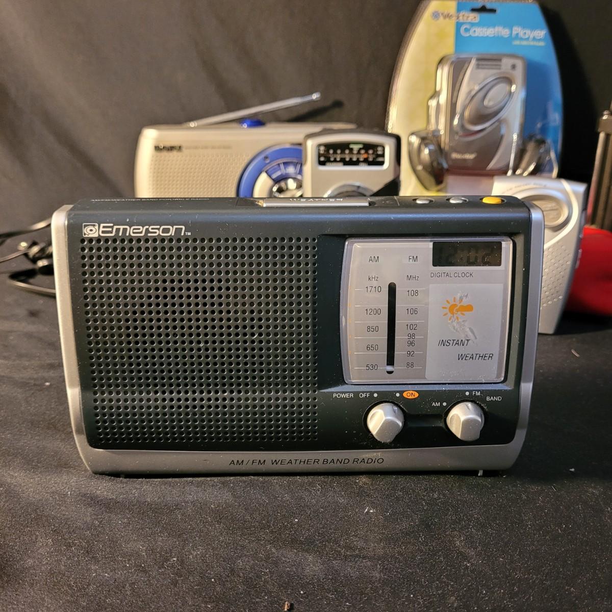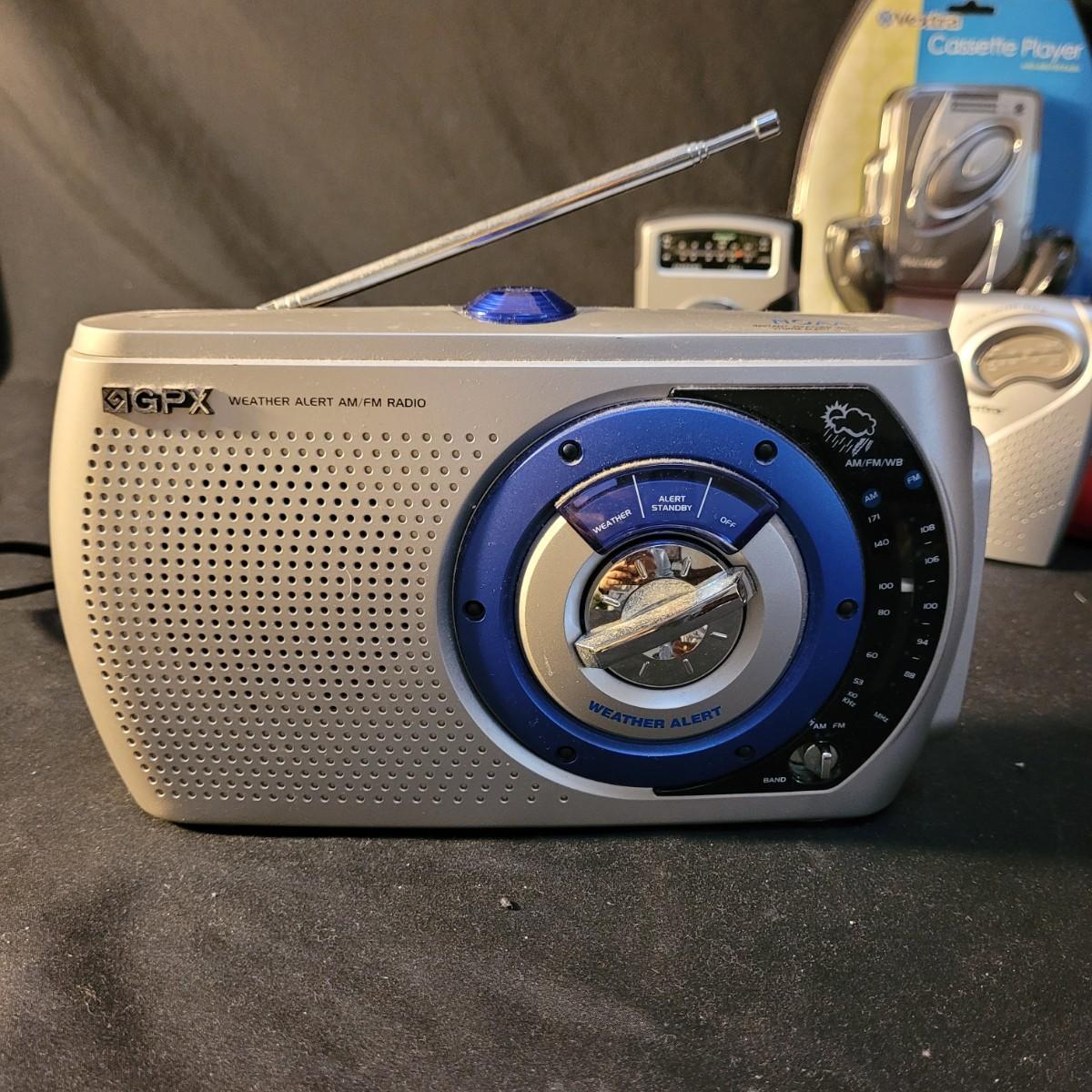 This large lot of electronics includes three weather alert radios, new in box Vextra cassette player, a Coby discman and more. All radios powered on when plugged in. Unable to test discman. GPX weather radio measures approximately 10” x 6”. Shipping available.