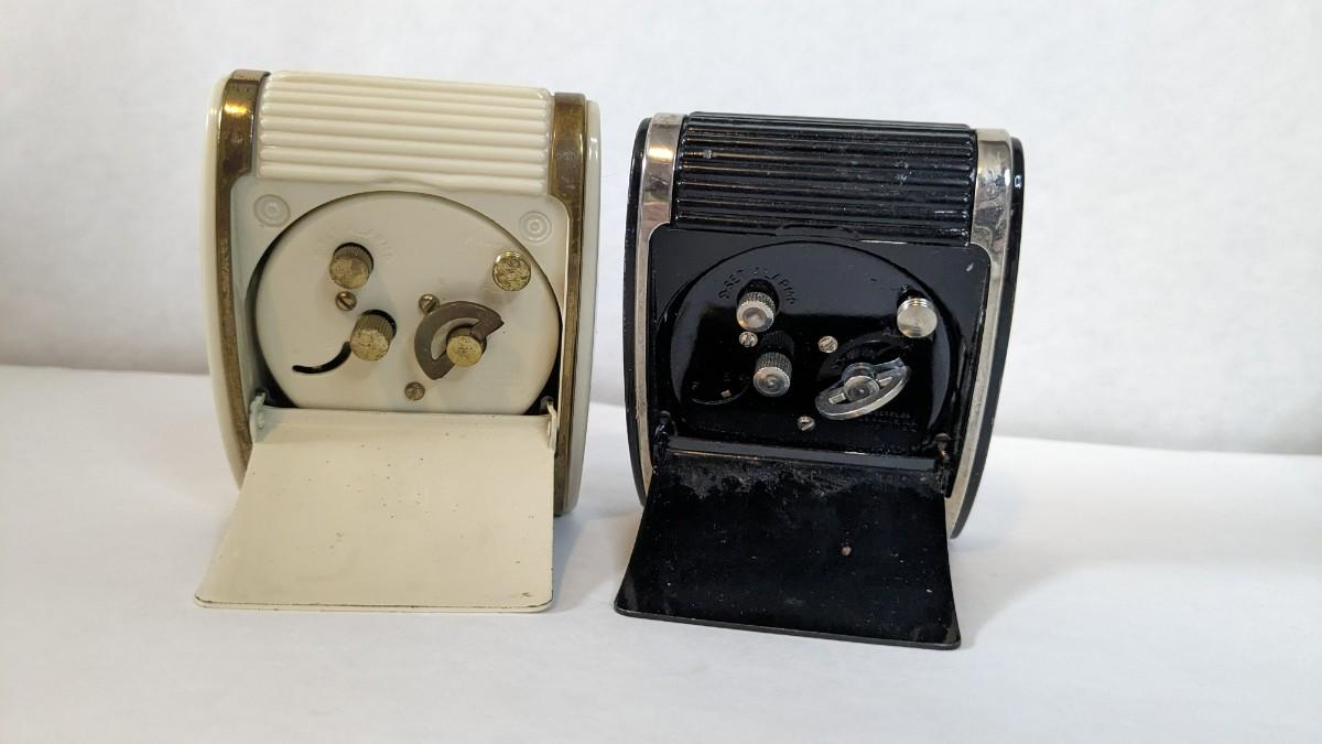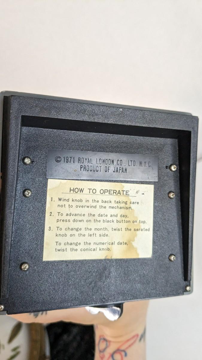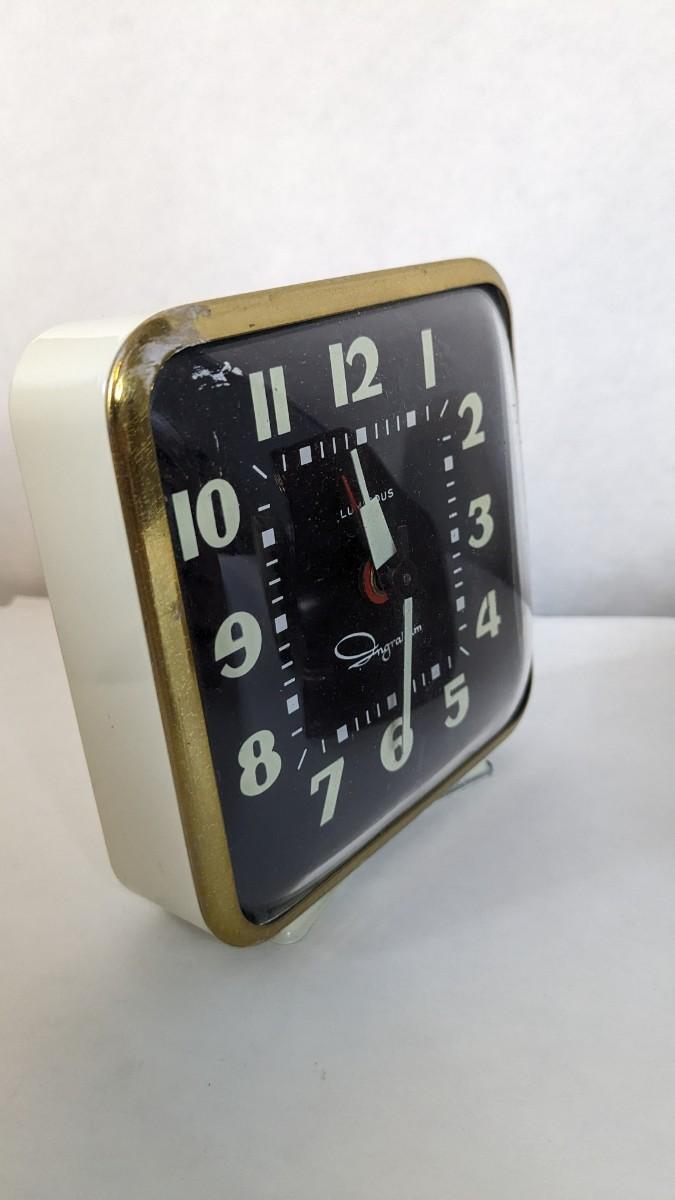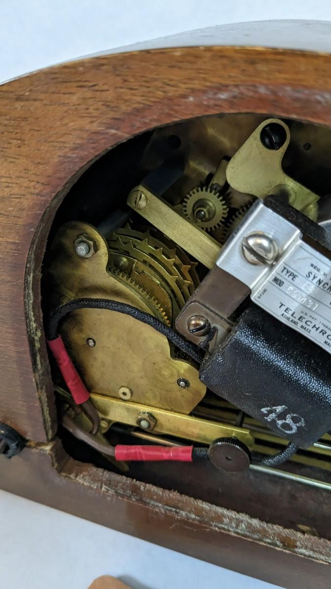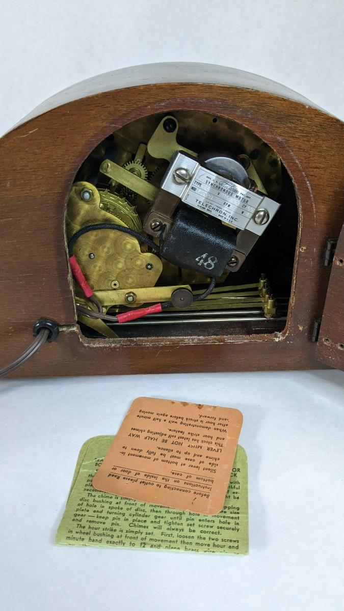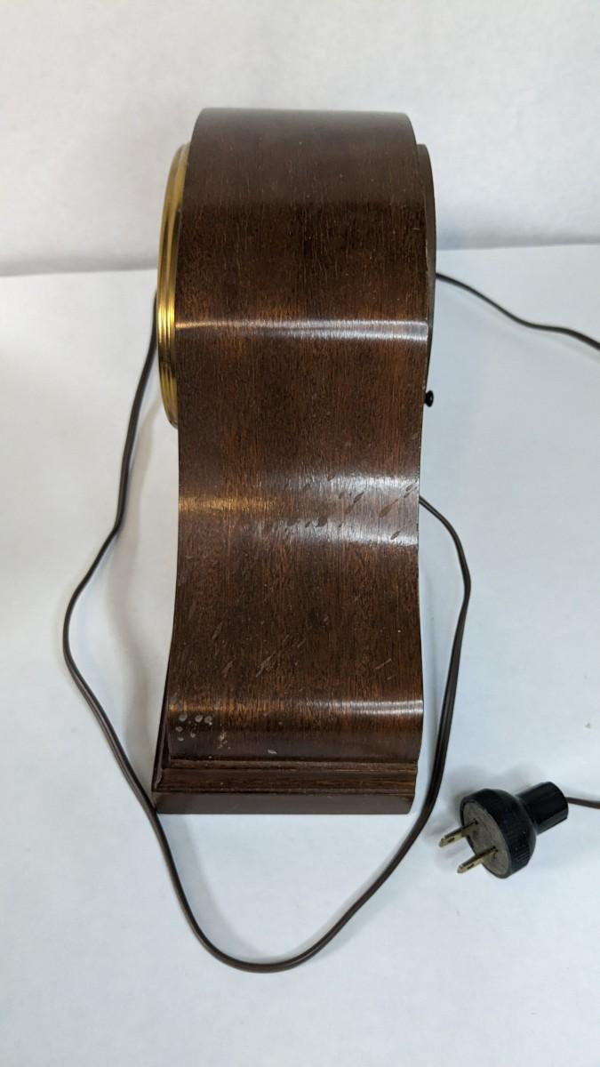 includes electric Revere Westminster chime in great cosmetic and functioning condition. 2 travelling Westclox clocks, convex face Ingraham Luminous that needs attention, 1971 revolving calendar/music box made in Japan, and electric clock.