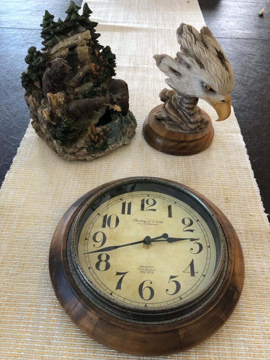 CLOCK, BEARS, AND EAGLE SCULPTURES
