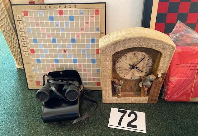 LOT#72: Clock, Binoculars & Assorted Games Lot