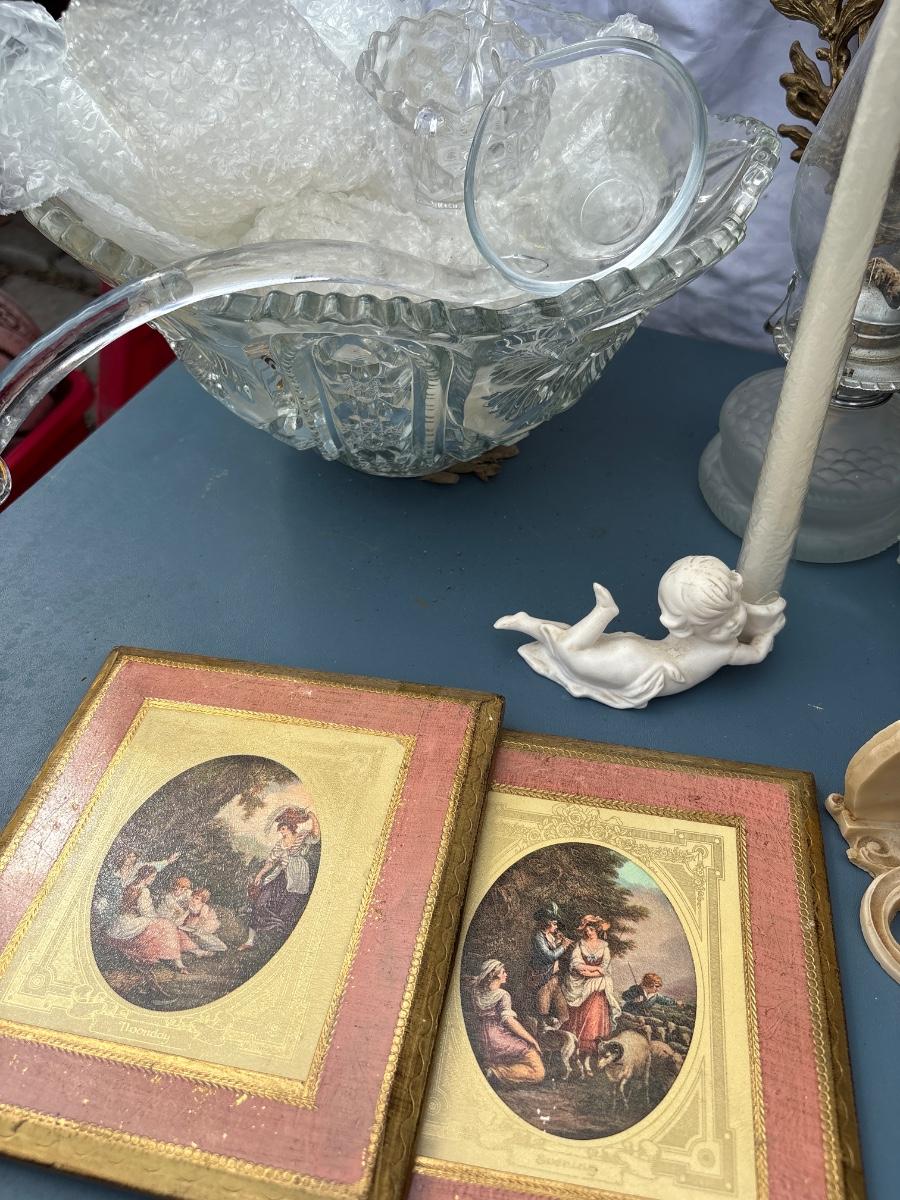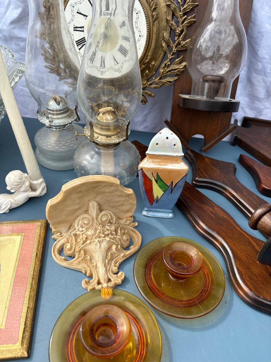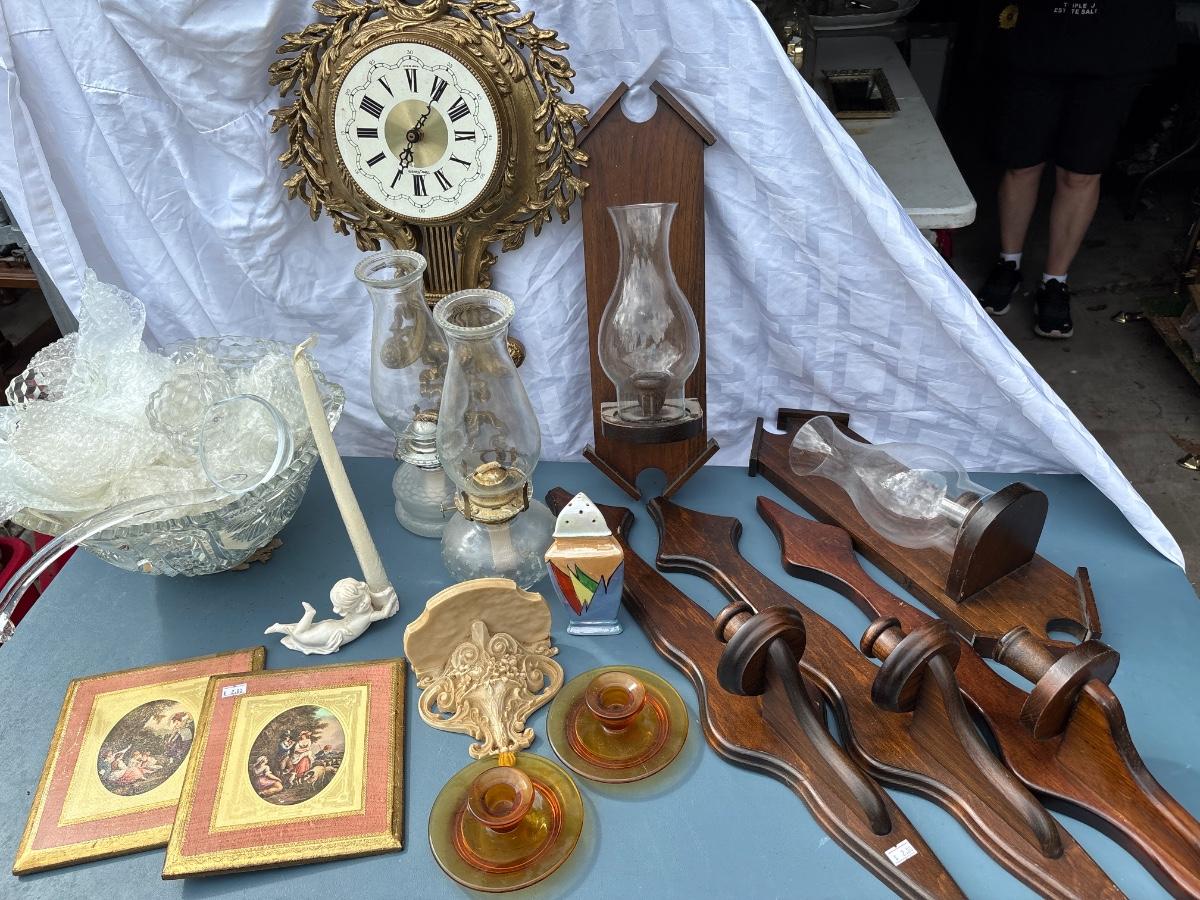 Clock, Crystal Punchbowl, oil, lamps, wall, sconces, candle holders, and more