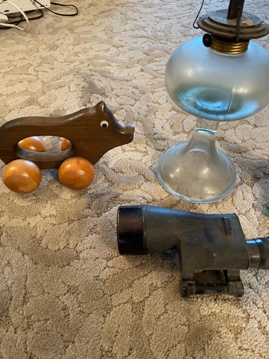 Clock, oil, scope and pig