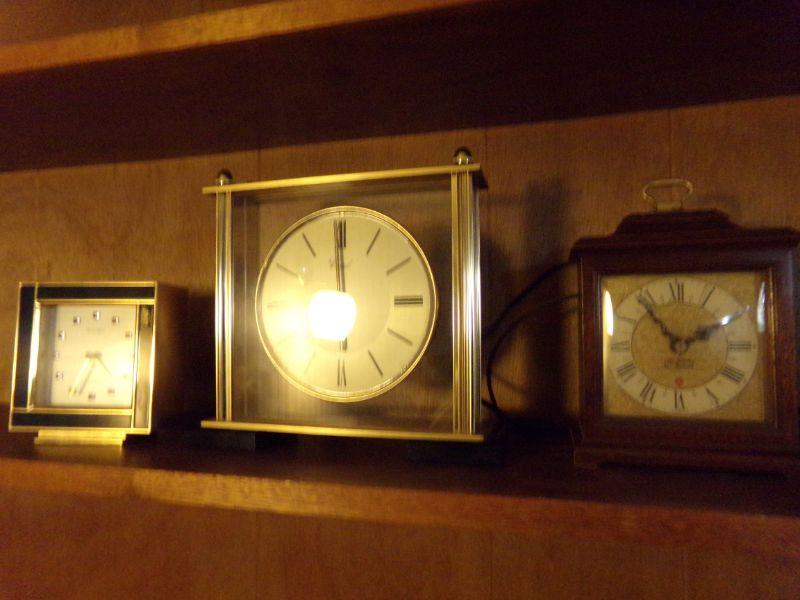 SEIKO, SETH THOMAS AND WE ARE NOT ABLE TO READ THE MAKER ON THE LAST ONE