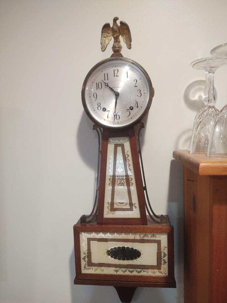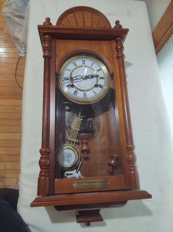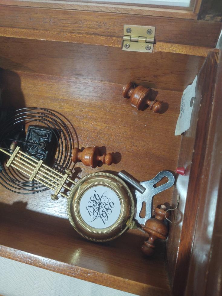Seth Thomas and a U.S. Commemorative clock key included - bottom finials are inside the clock and need some glue. None were glued in on the frame.