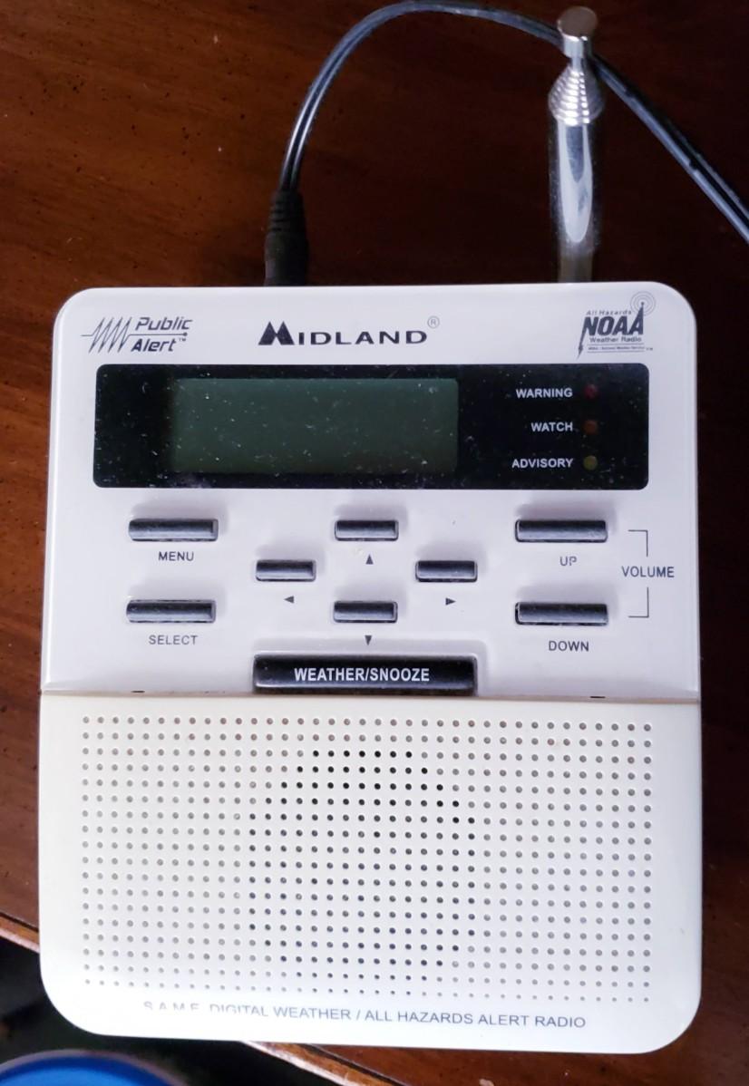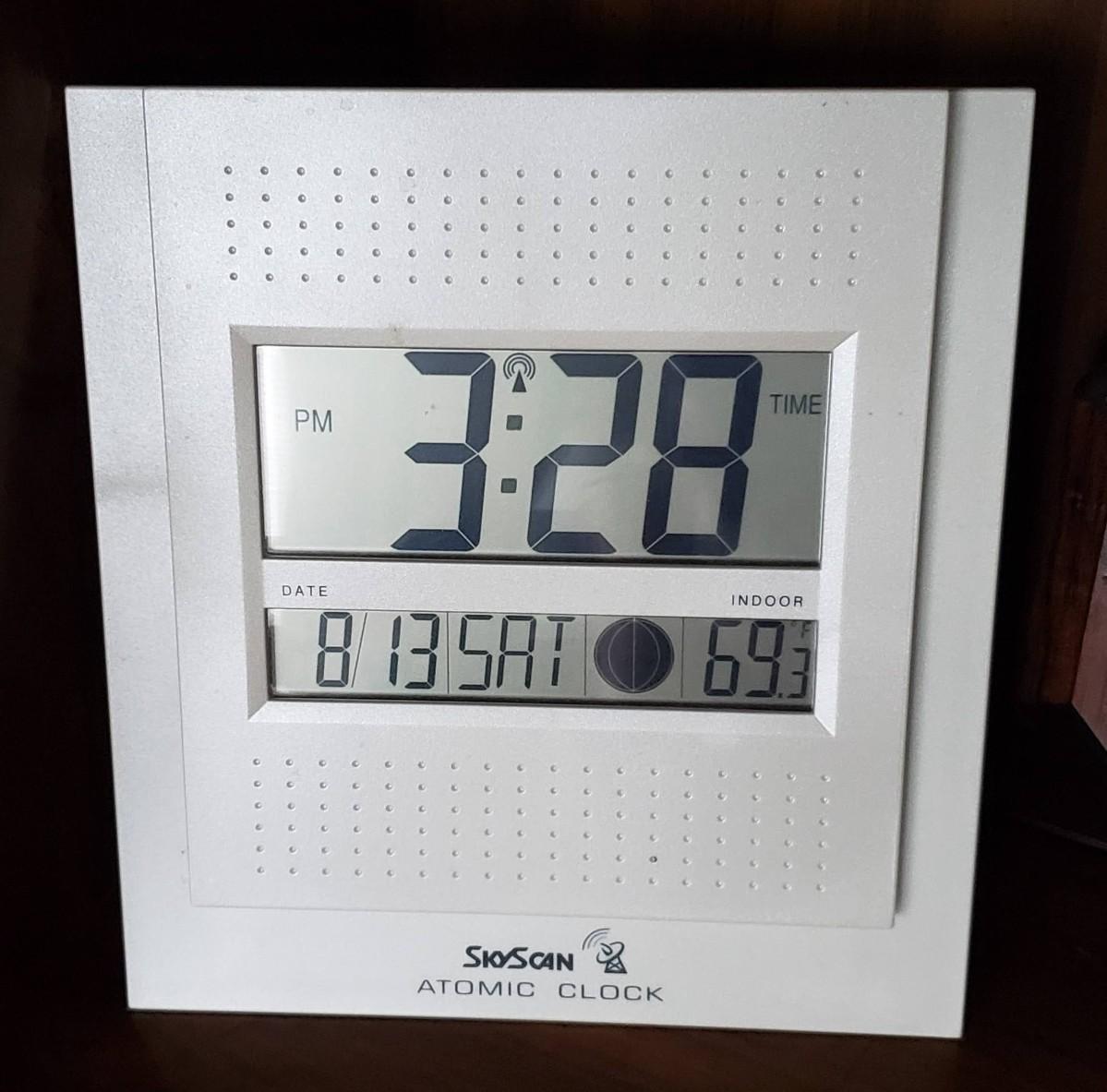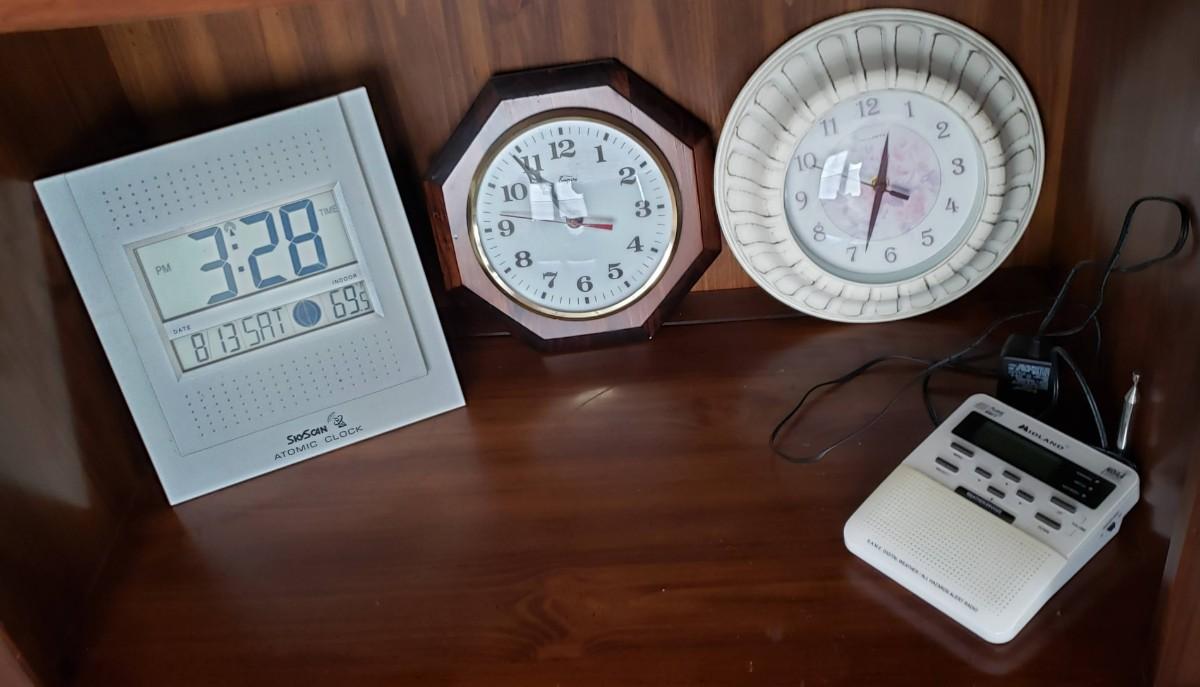 2 analog clocks, atomic clock, and a weather alert system