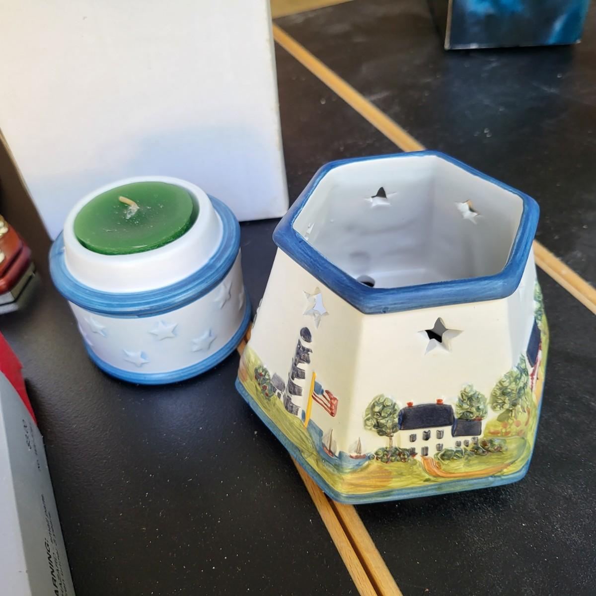 These items are all new old stock in the boxes. Clocks, candle holder, and change dish.