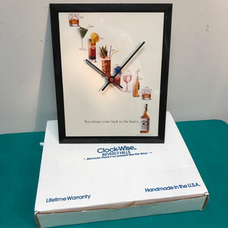Clockwise° Jim Beam Cocktail Barware Glass 1959-1990 Promotional Clock NIB