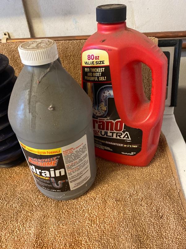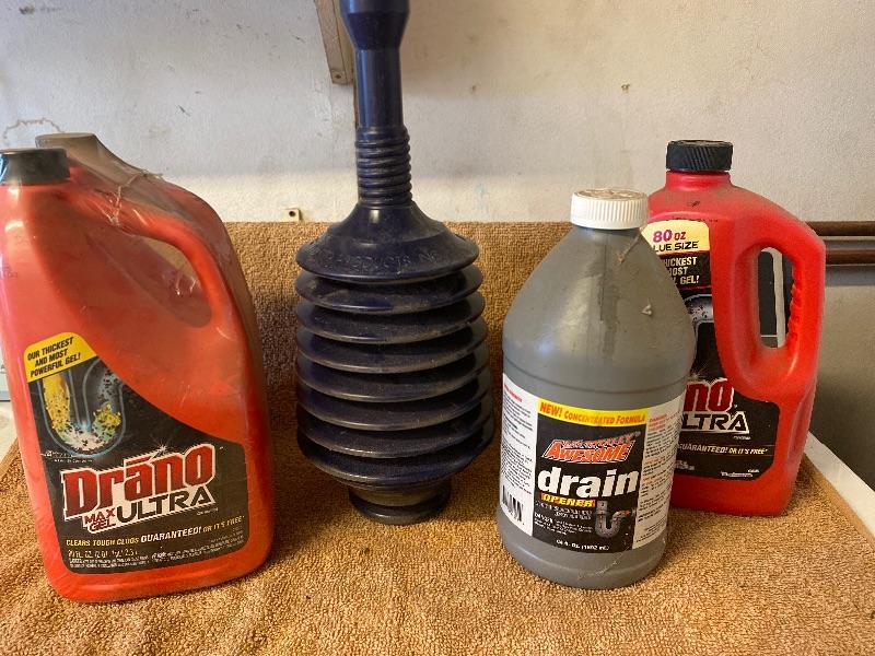 Clog Remover Lot. 2 unopened bottles of Drano Max, half bottle of Drano Max, full bottle of Awesome drain opener and a new master plunger. Local pick up only.