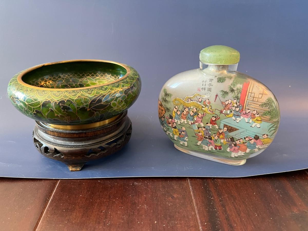 Cloisonné Bowl and Chinese Painted Glass Perfume Bottle