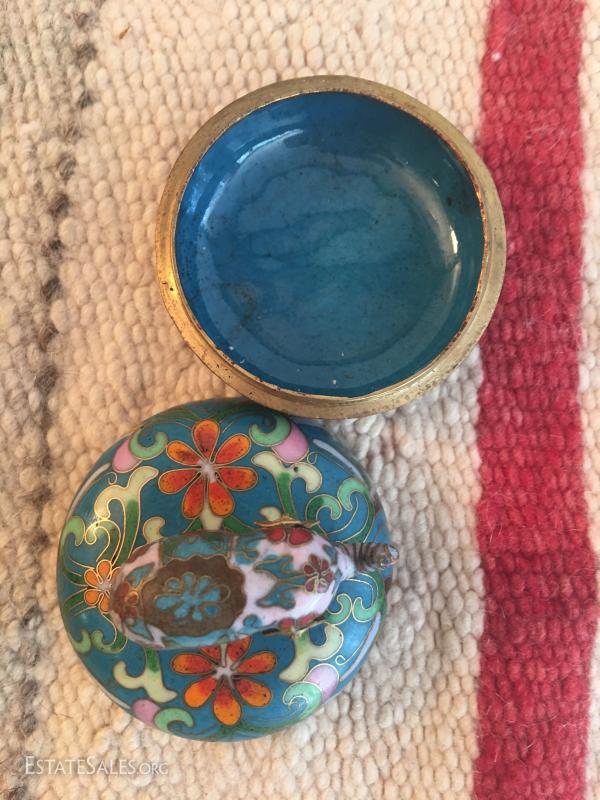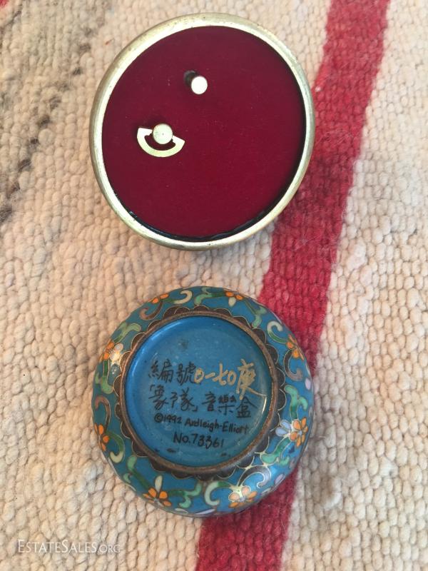 Cloisonné Music Box measures about 3" in diameter, signed and numbered.