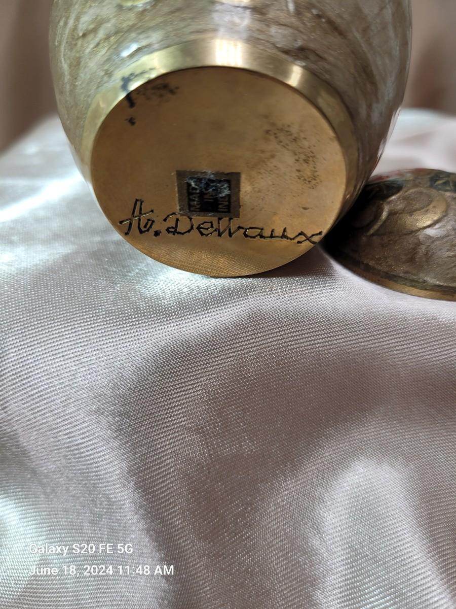 Gold embossed floral with lid (A Dellaux) 3.5 inches tall made in India