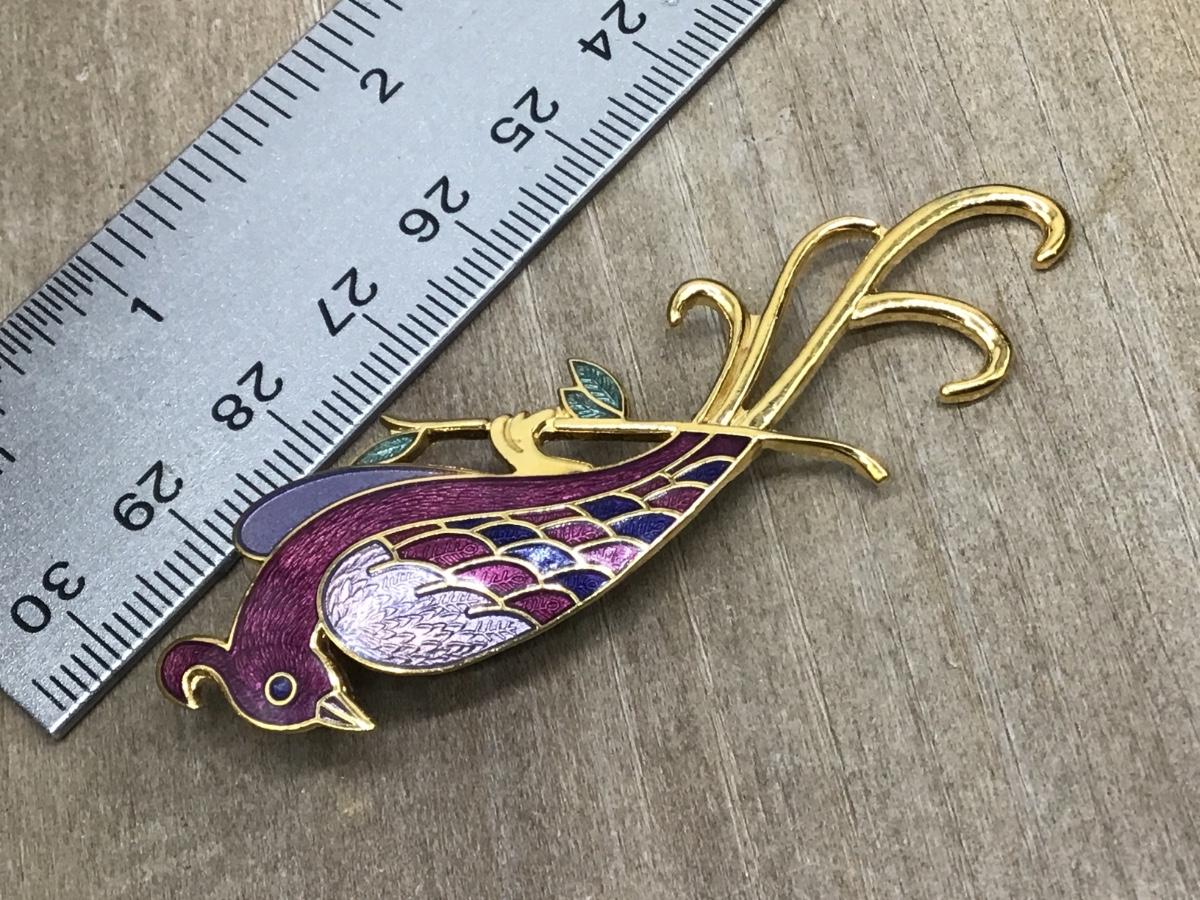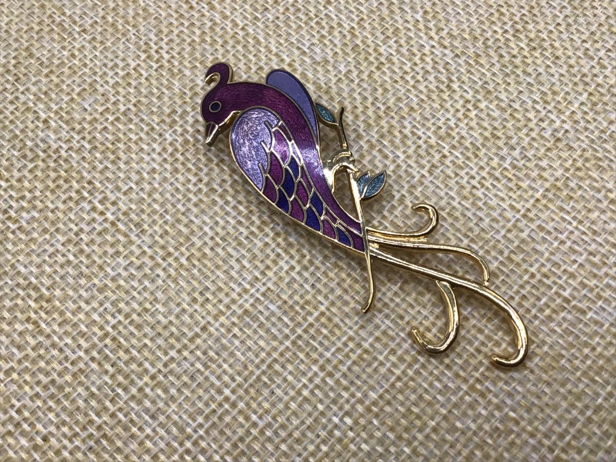 Cloisonne Brooch Pin Bird On Branch