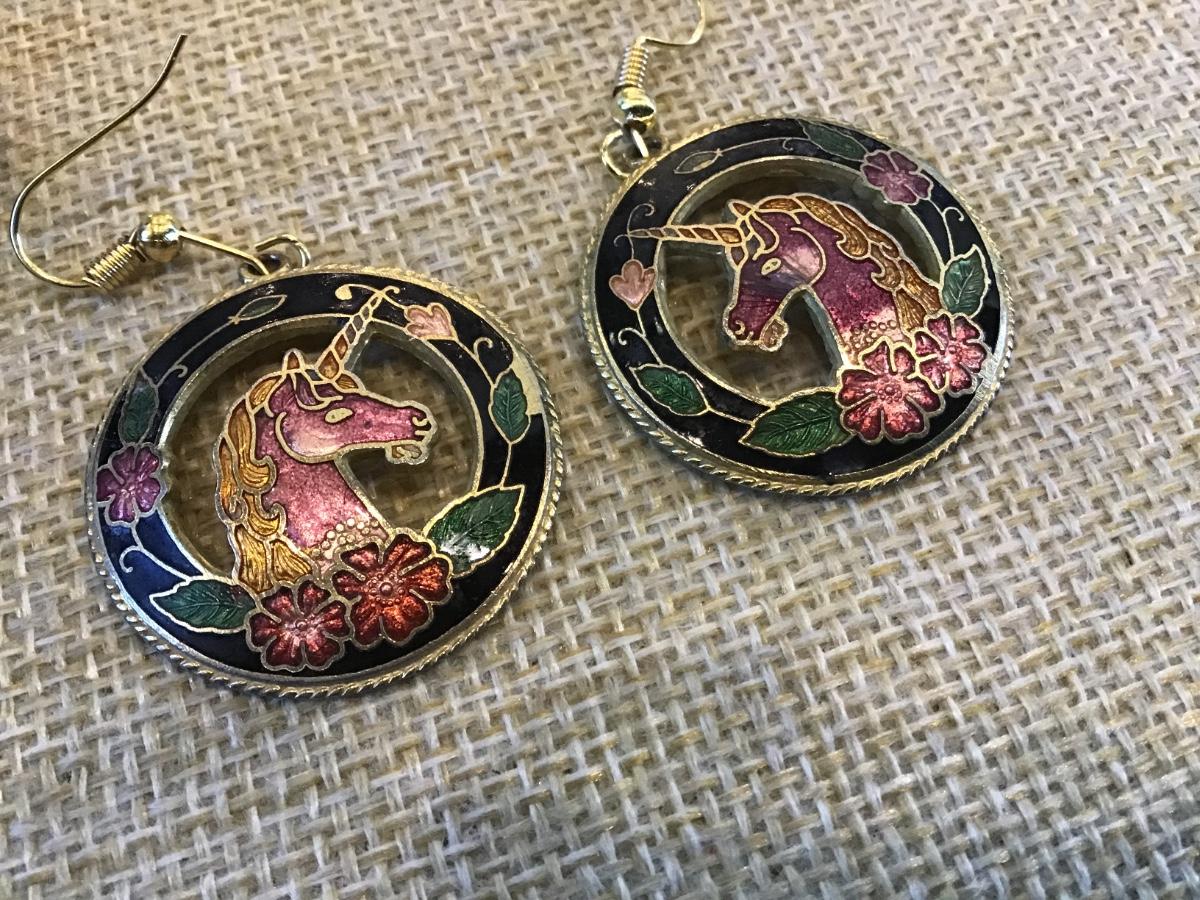 Cloisonne Enamel Unicorn Earrings