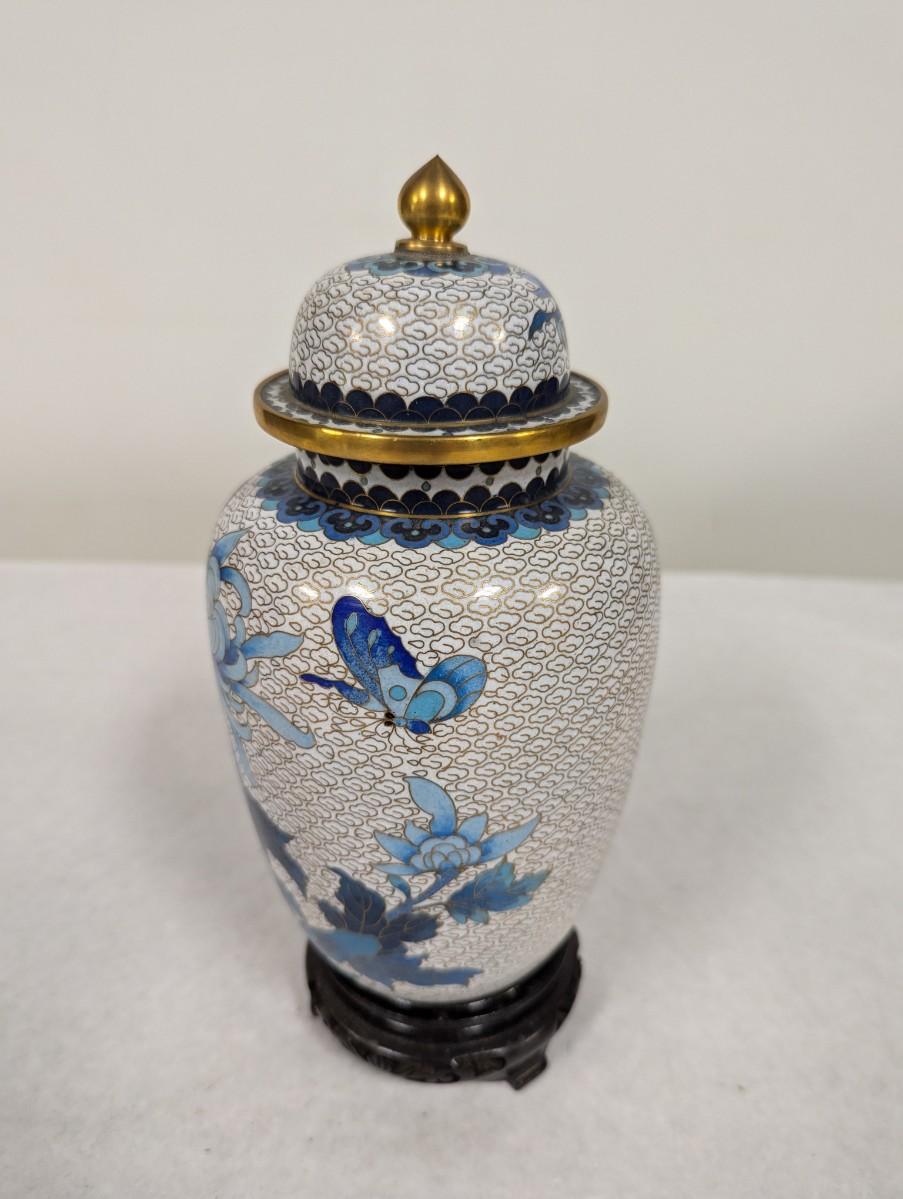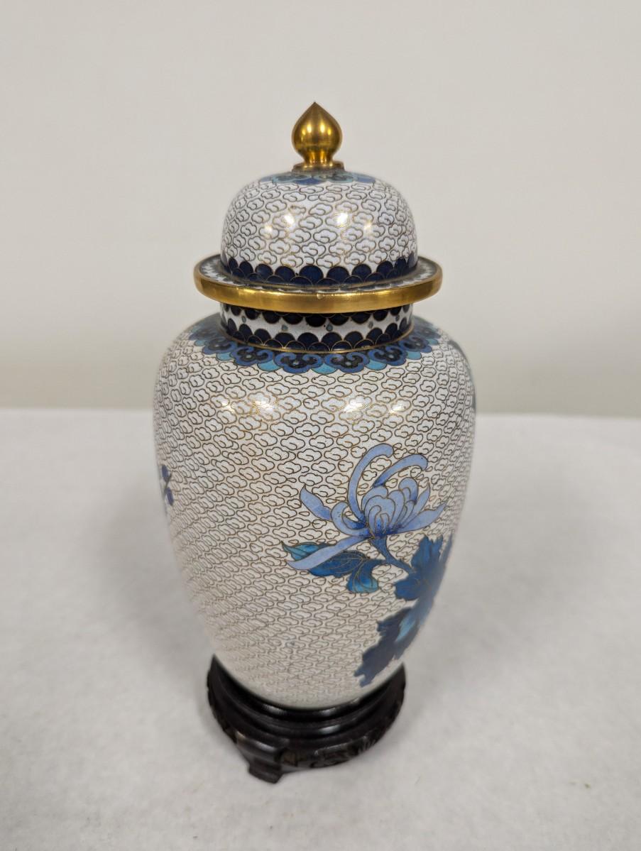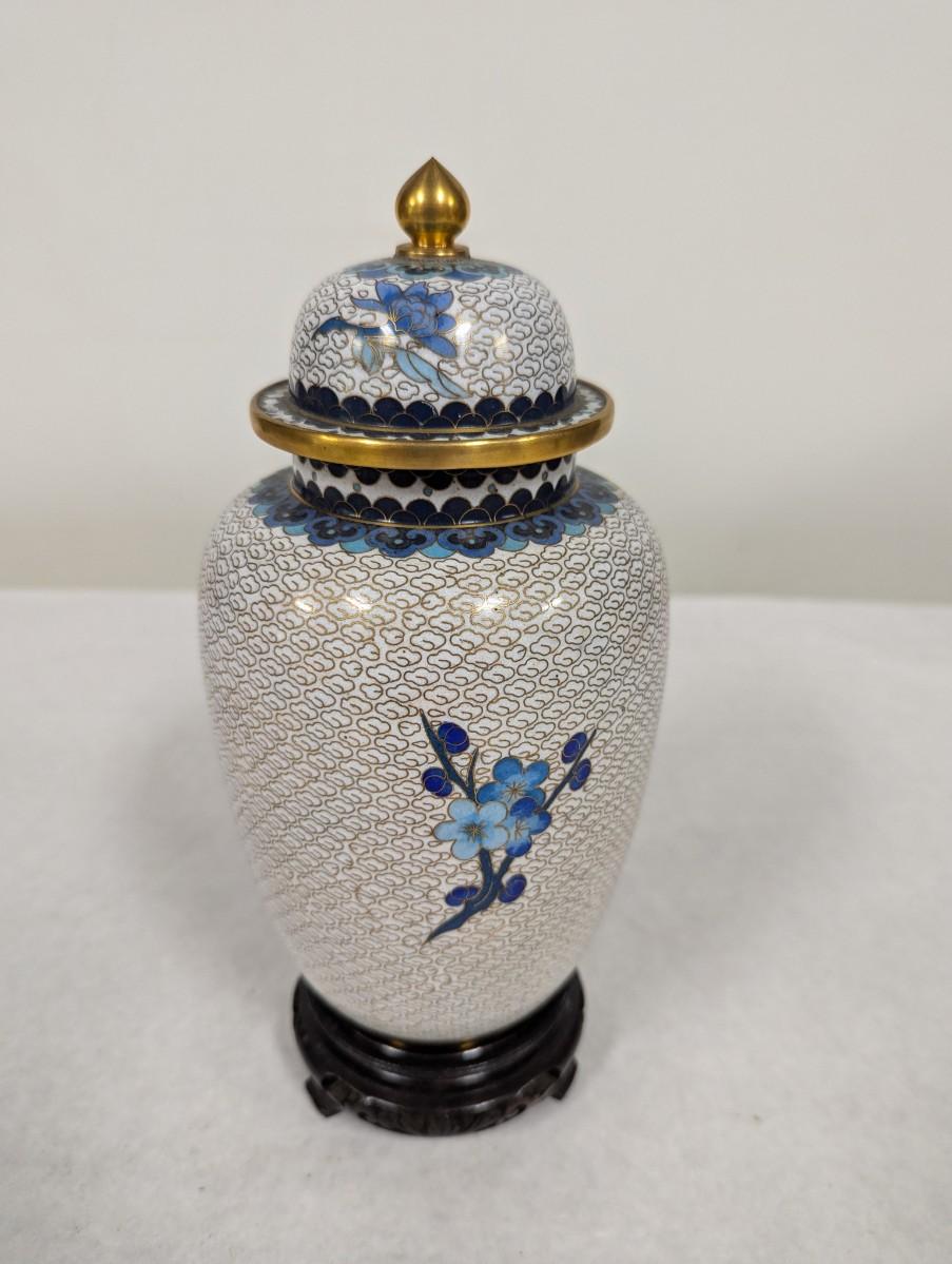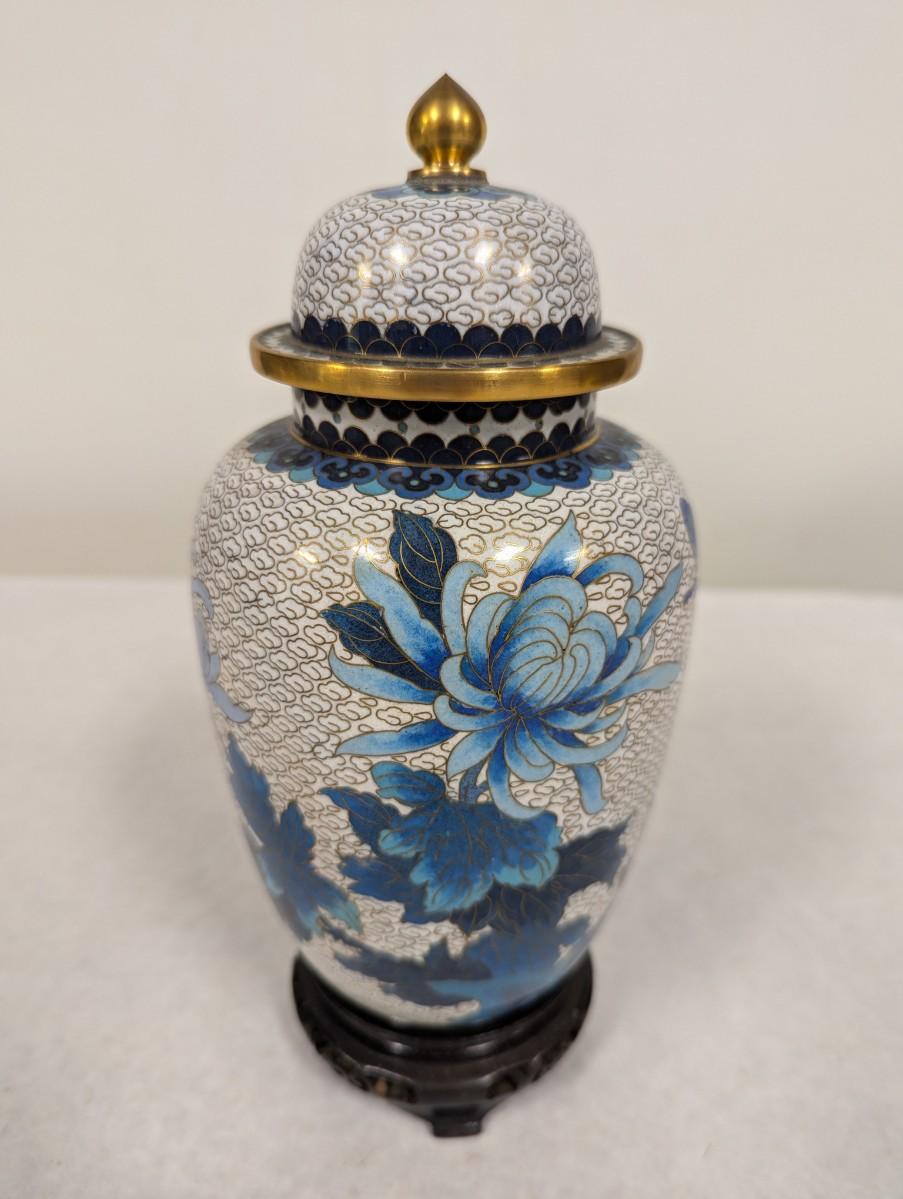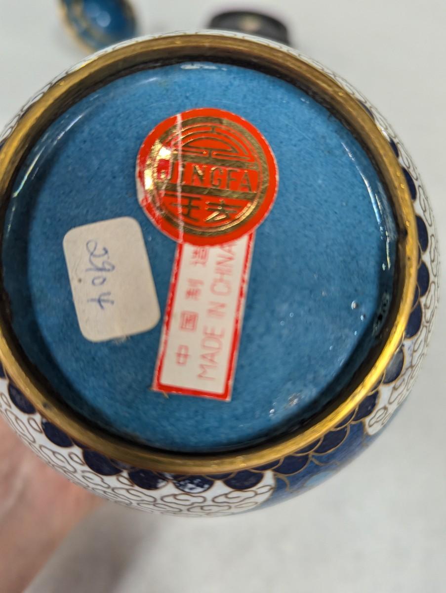 Vintage Chinese Blue & White Enamel Cloisonne Vase
