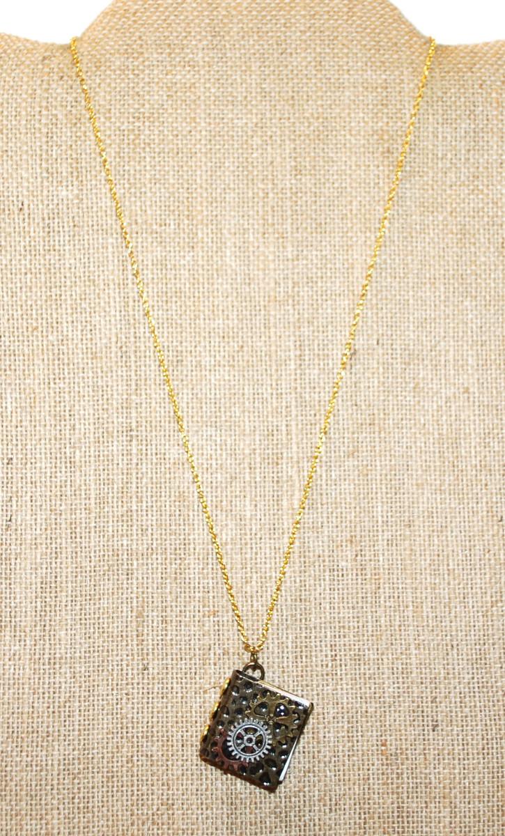 CLOSED Book PENDANT (1" x 1") on a Gold Tone Necklace Chain 18" L