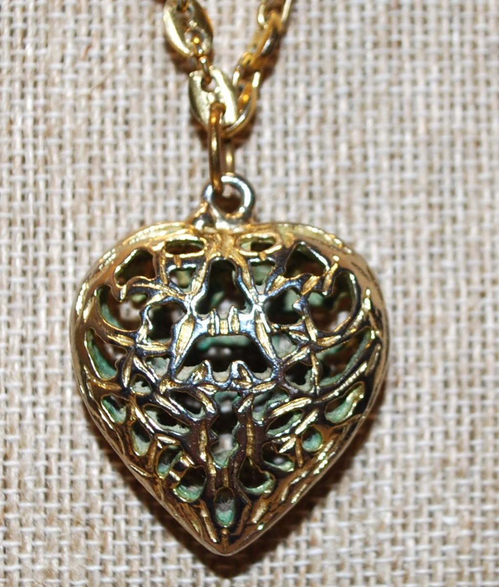 Closed Gold Tone Heart Shaped Locket PENDANT (1¼" X 1¼") on a Long Necklace Chain 32" L