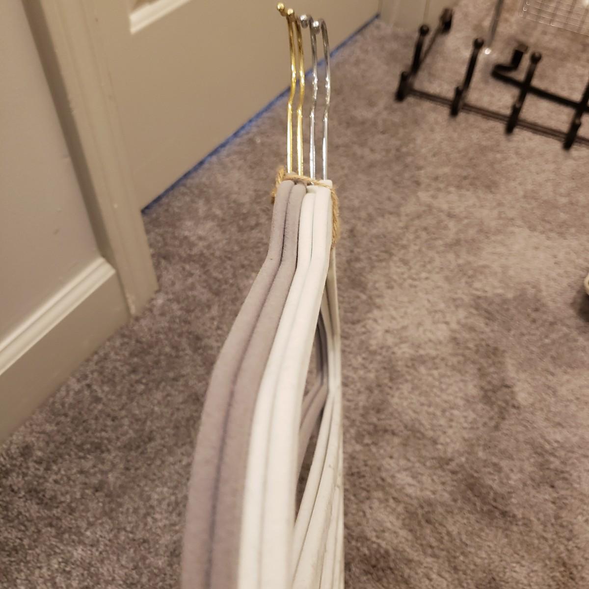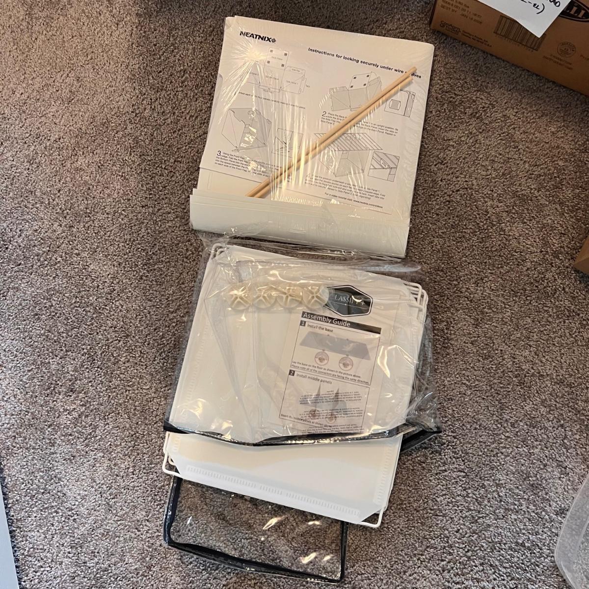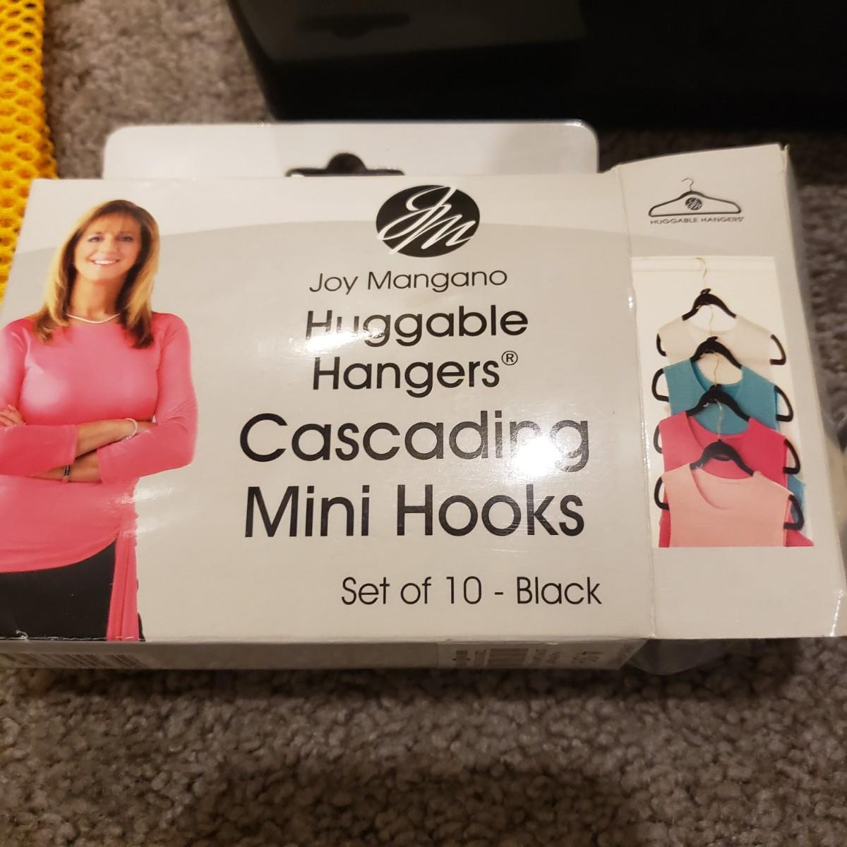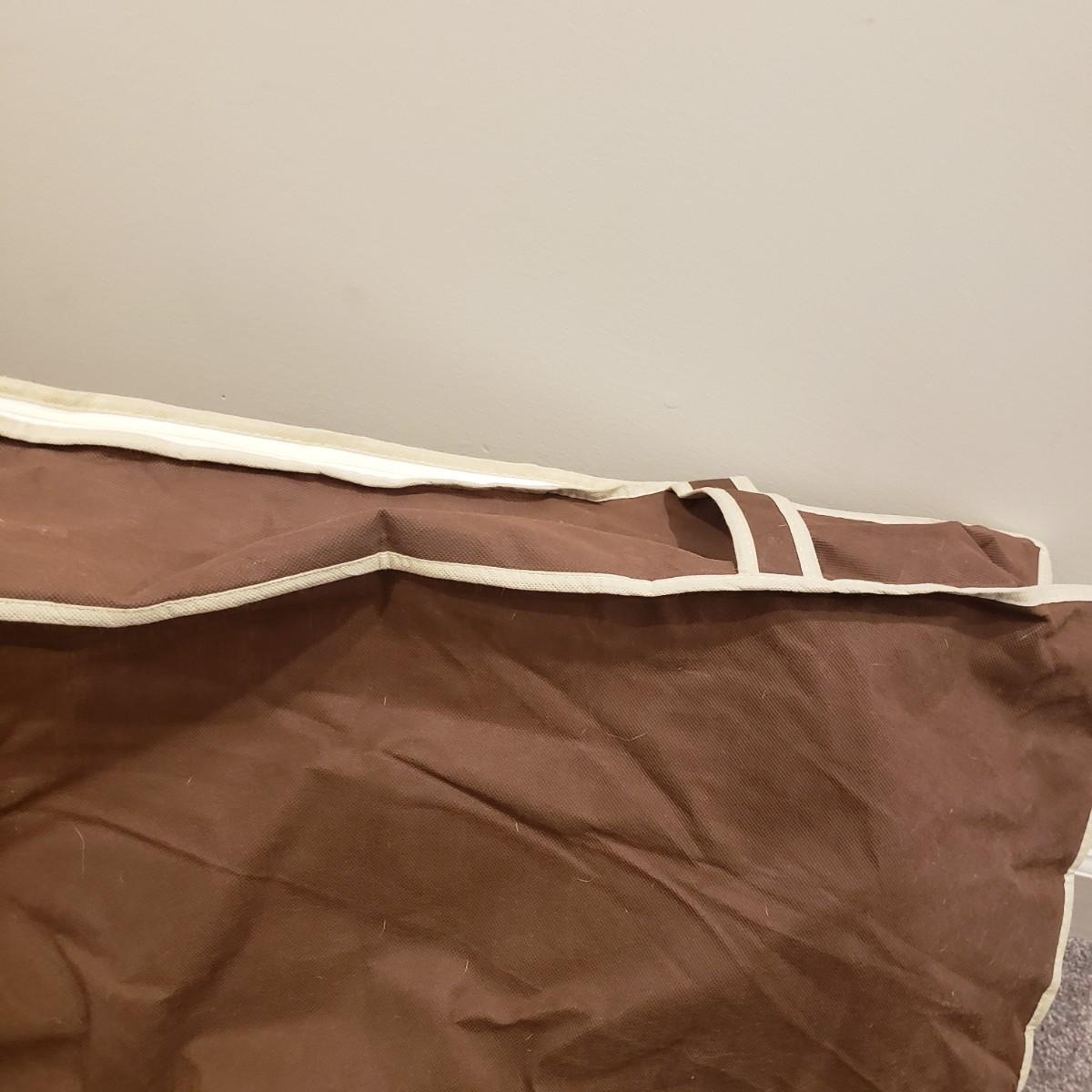 This organization lot will help in your closet and with your clothes! Some highlights are four velvet four pant hangers, a metal drawer, with a flat top for more storage measuring 18" x 13" x 10"H. The white metal adjustable over the door hanger can hold so many clothes! The two brown storage bags have zippers and handles on the side. These measure 41" x 17" x 6"H. The brown metal over the door hanger has five hooks. Two additional closet storage solutions include a Classify shelf separator and a Neatnix cubby that is designed to hang off a closet shelf.
