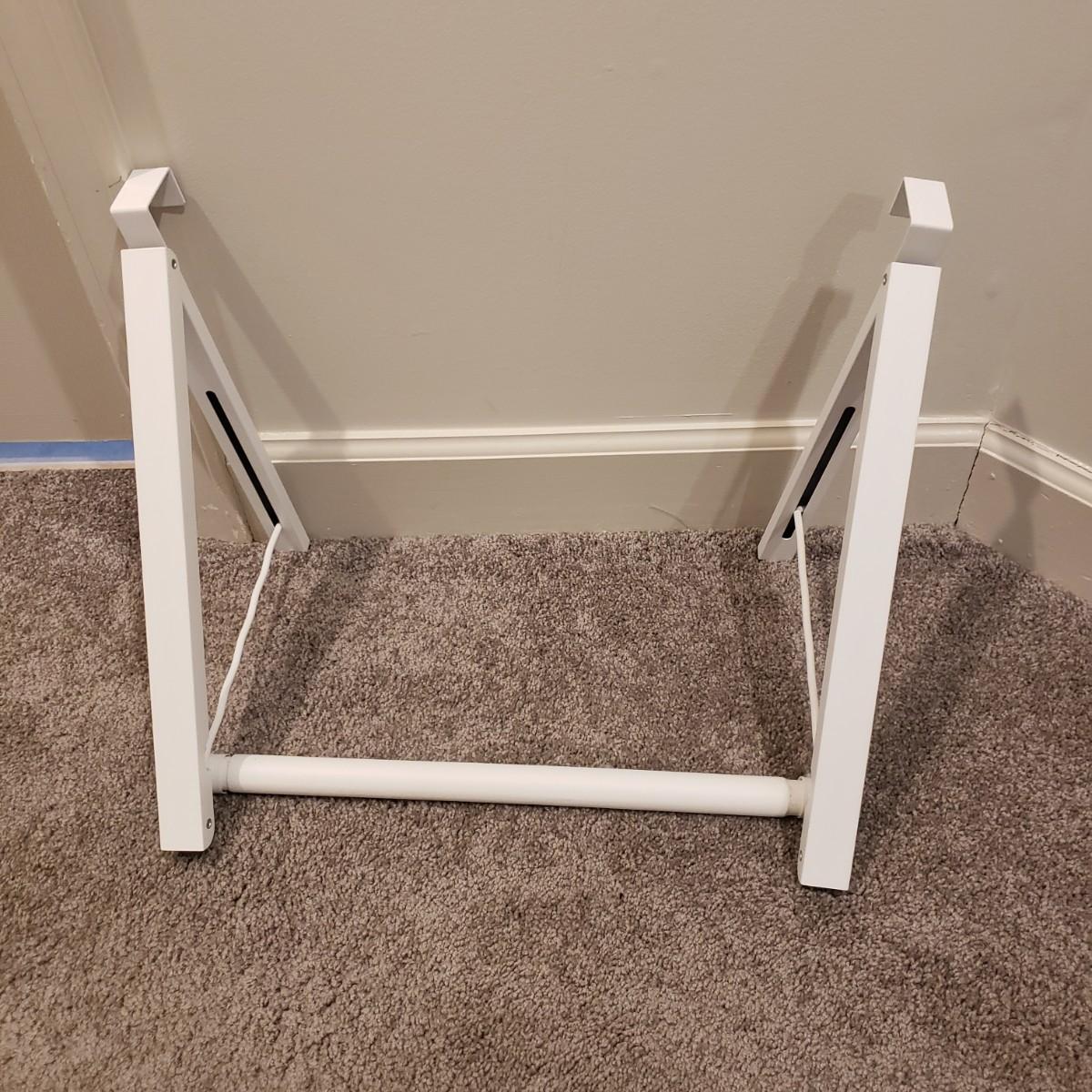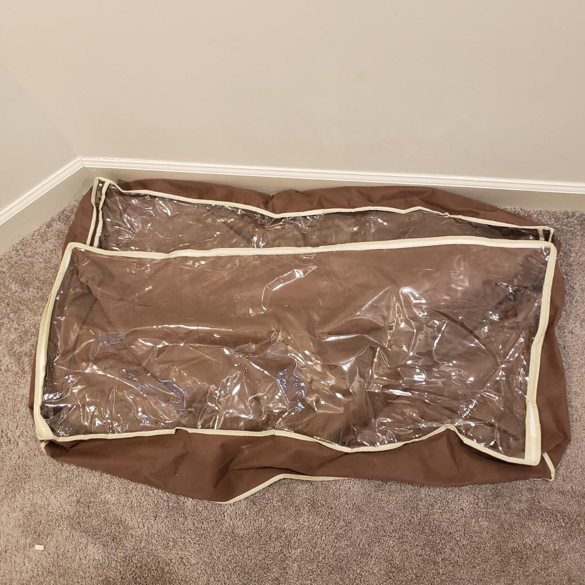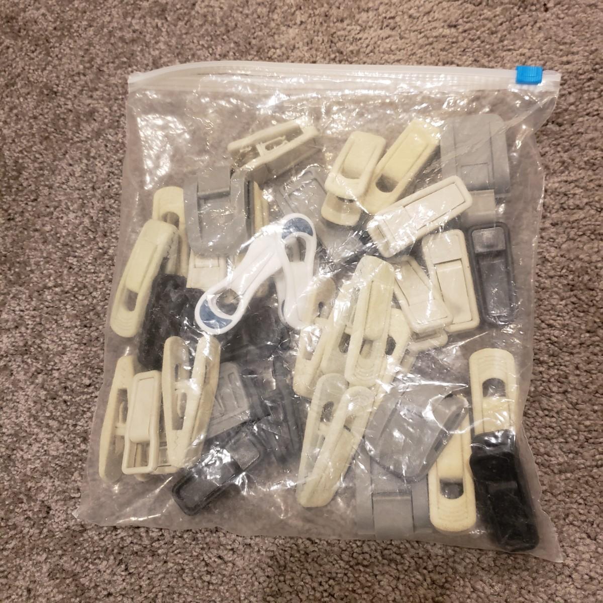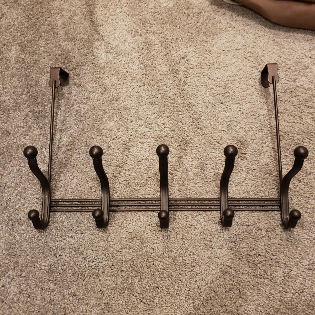 This organization lot will help in your closet and with your clothes! Some highlights are four velvet four pant hangers, a metal drawer, with a flat top for more storage measuring 18" x 13" x 10"H. The white metal adjustable over the door hanger can hold so many clothes! The two brown storage bags have zippers and handles on the side. These measure 41" x 17" x 6"H. The brown metal over the door hanger has five hooks. Two additional closet storage solutions include a Classify shelf separator and a Neatnix cubby that is designed to hang off a closet shelf.