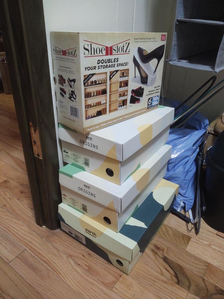 New shoes, over the door hangers, and more. Names like Earth Origins (10W) and Merrell (11).