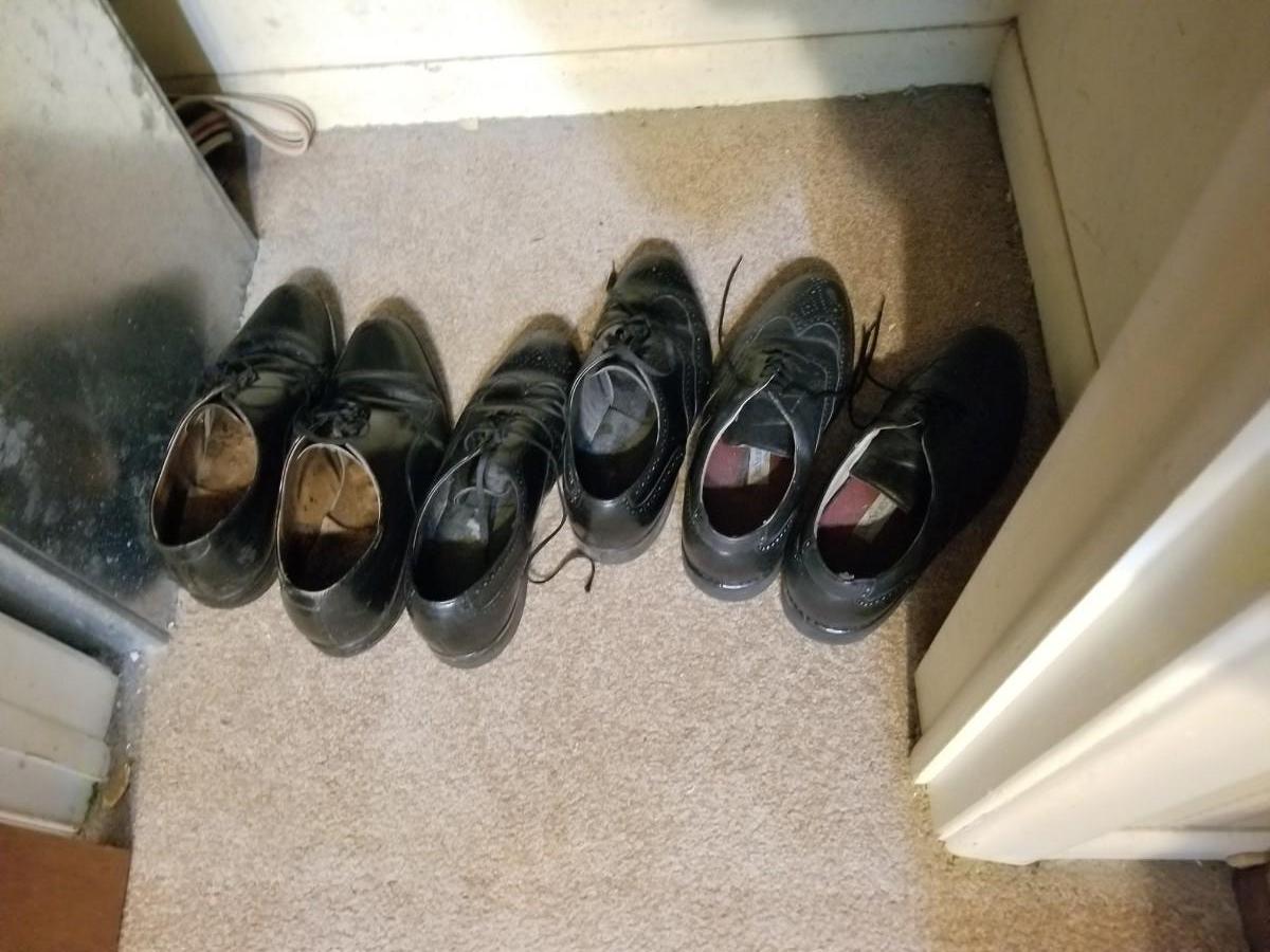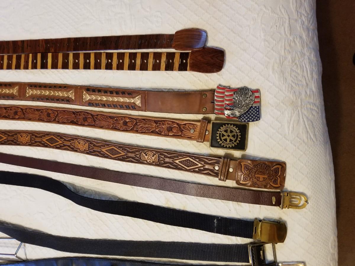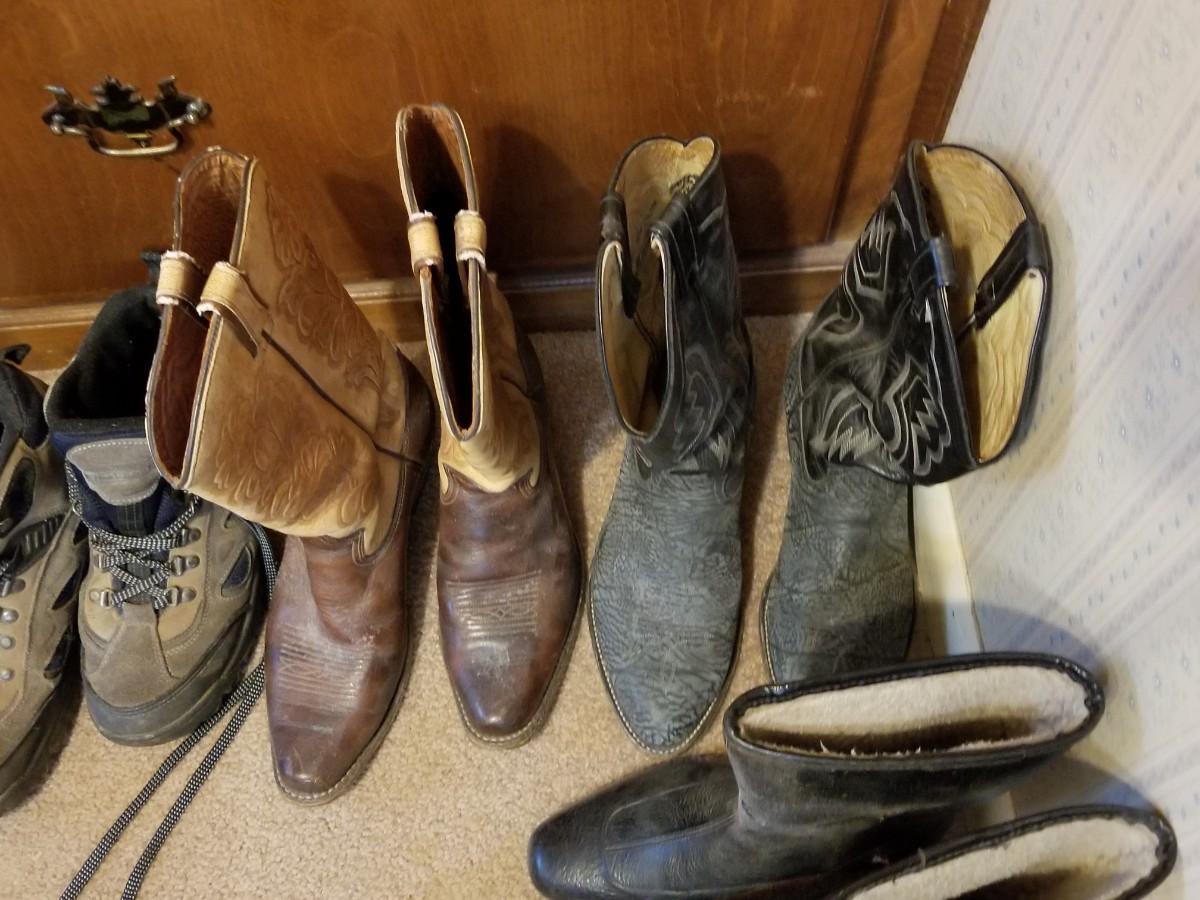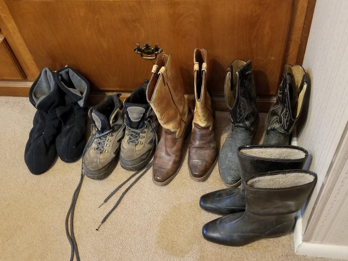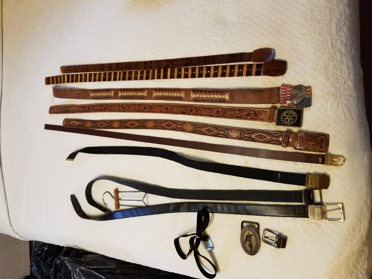 Boots size 9.5, ties, dress coats size 42R, belts, pants size 36, shirts size M