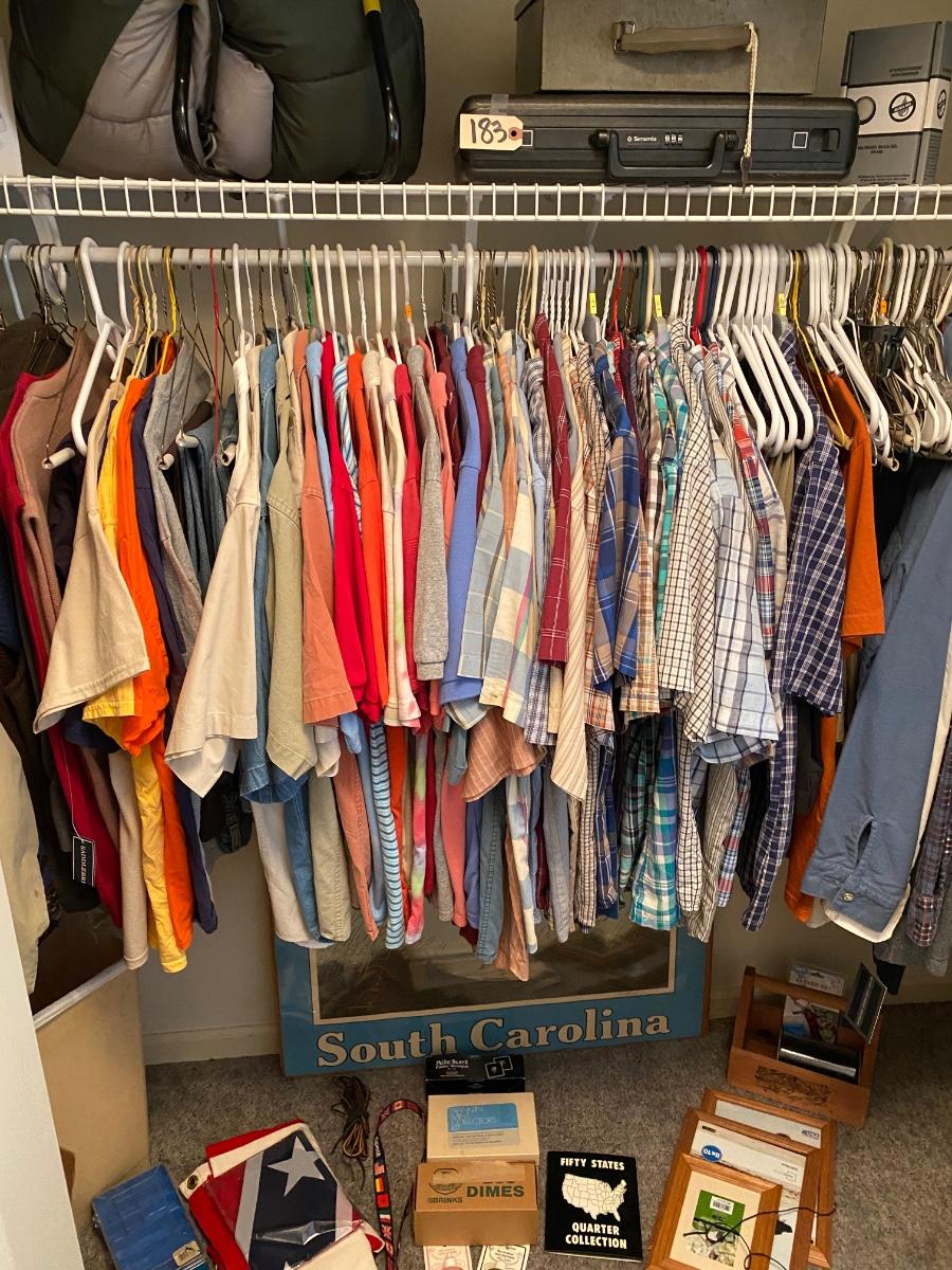 Closet Contents Includes Clothing, Sleeping Bag, Strong Box, Brief Case, Confederate Flags, and More As Pictured