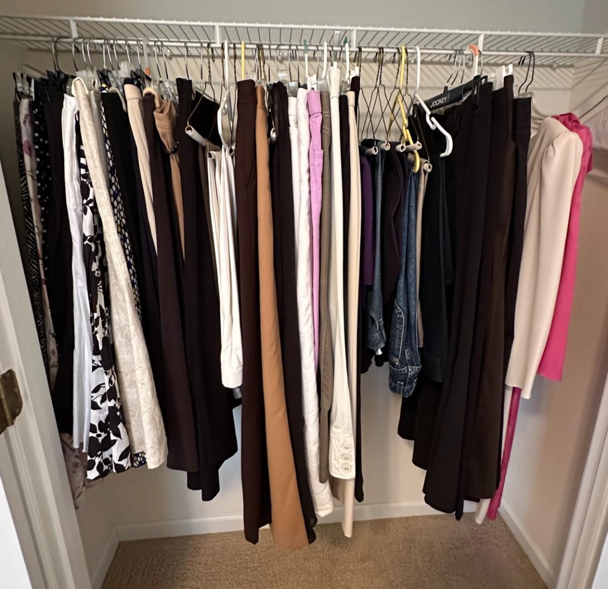 Closet FULL of Women's Pants and Skirts, & 2 Dresses