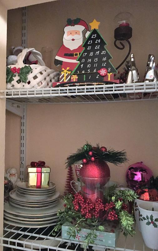 Closet lot of china & seasonal decor
