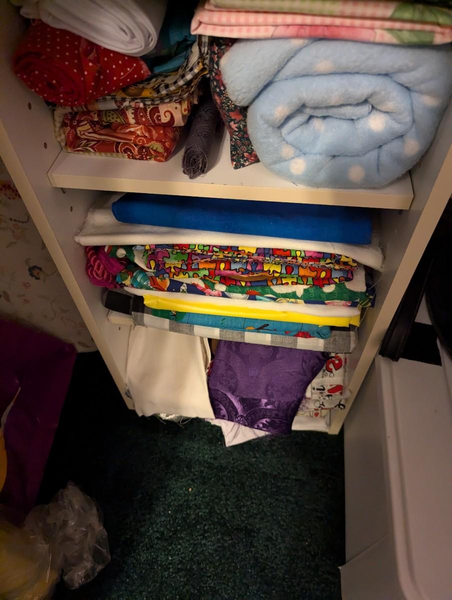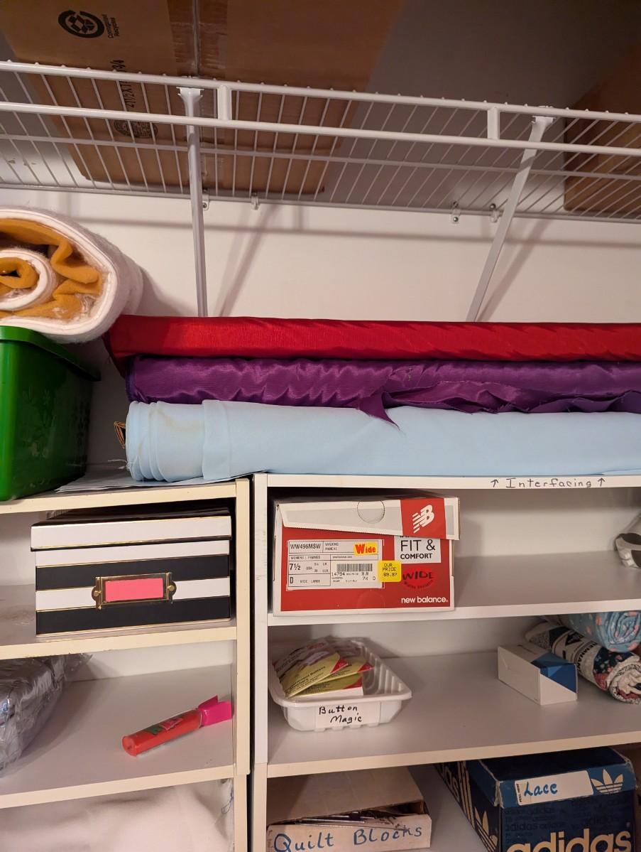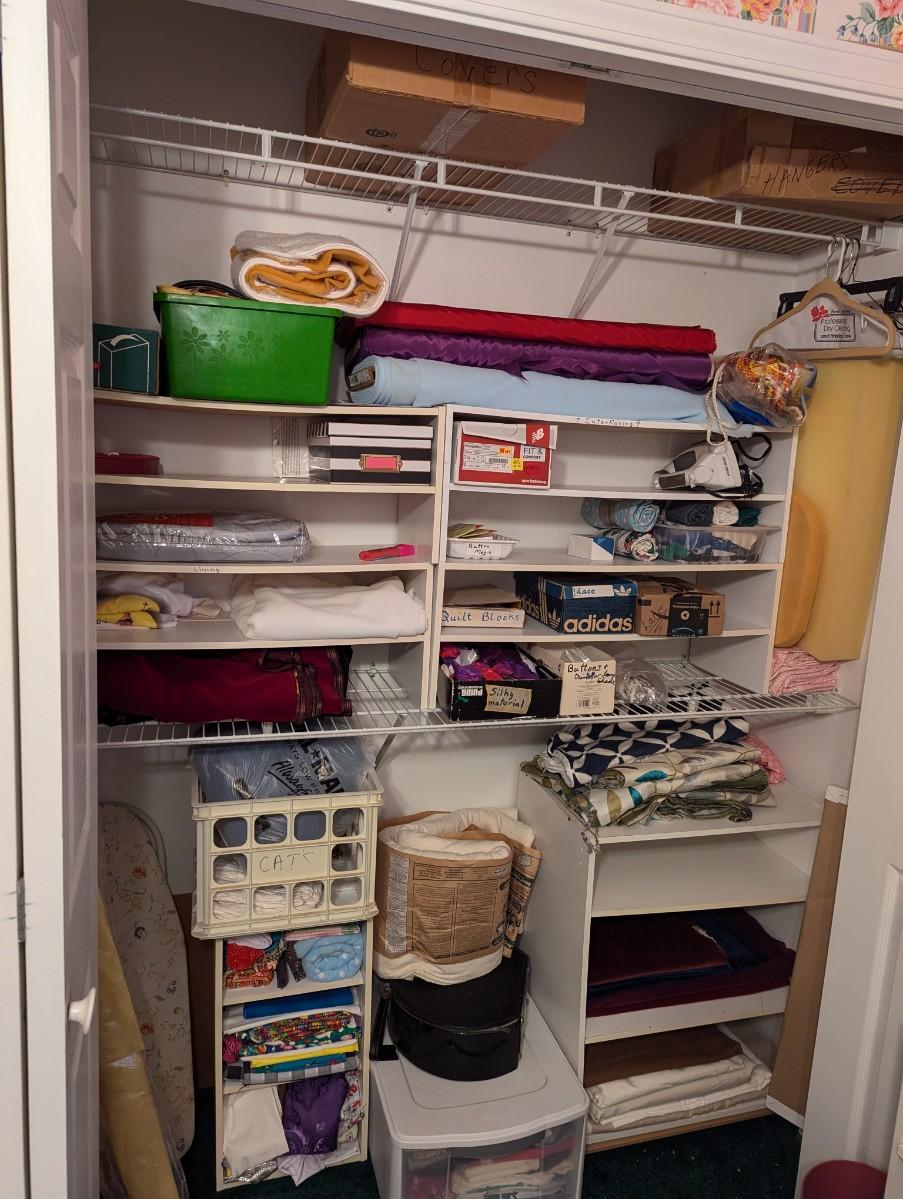 Closet Of Crafting Supplies Mostly Fabric Wood Shelves Included