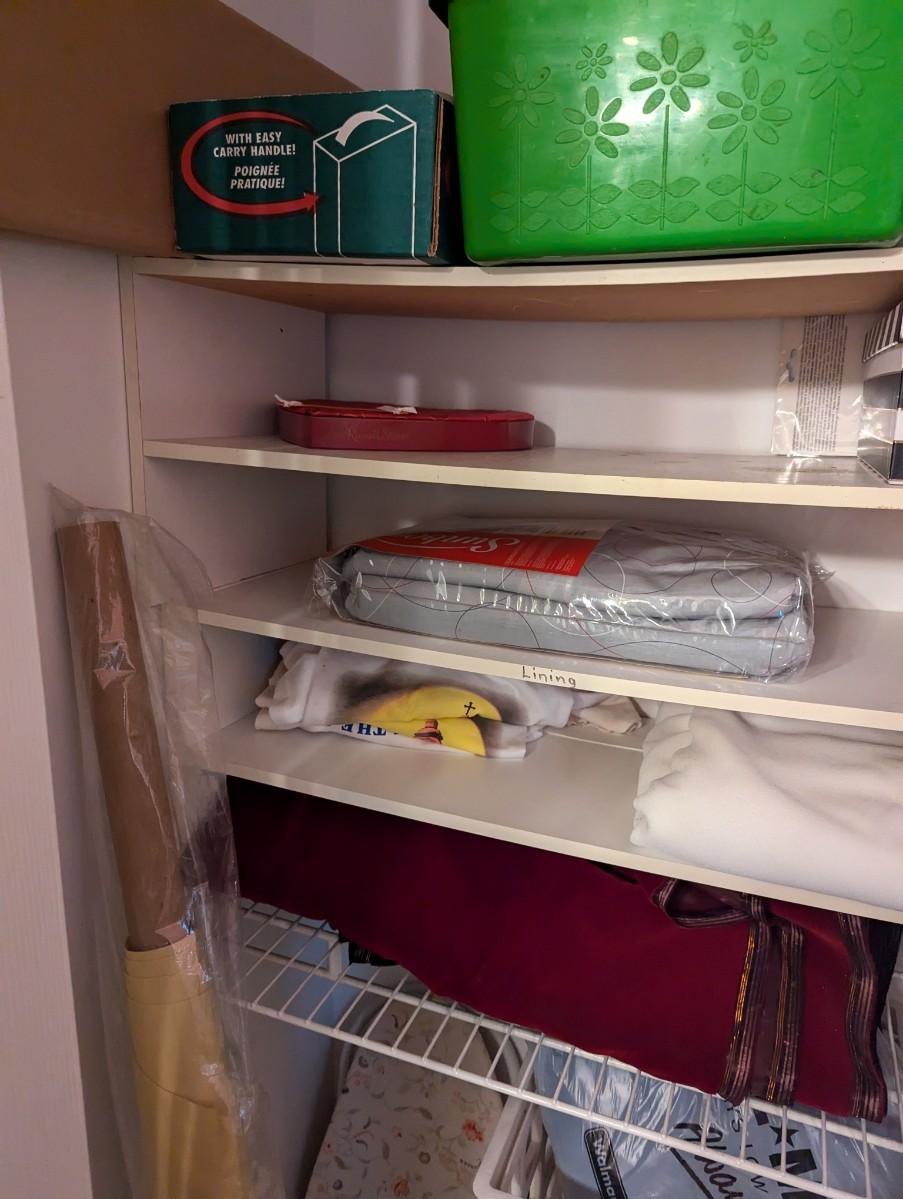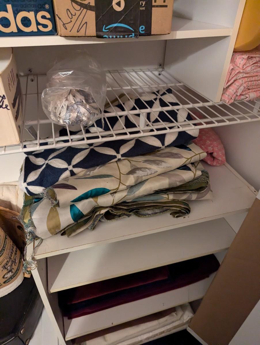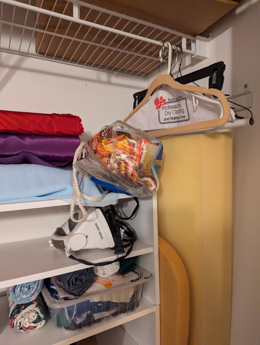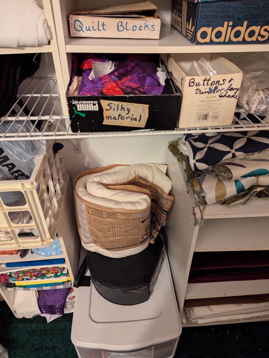 Closet Of Crafting Supplies Mostly Fabric Wood Shelves Included
