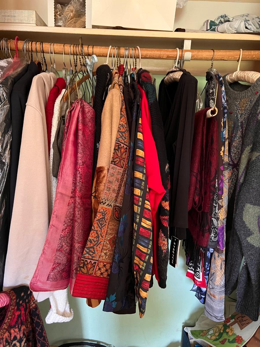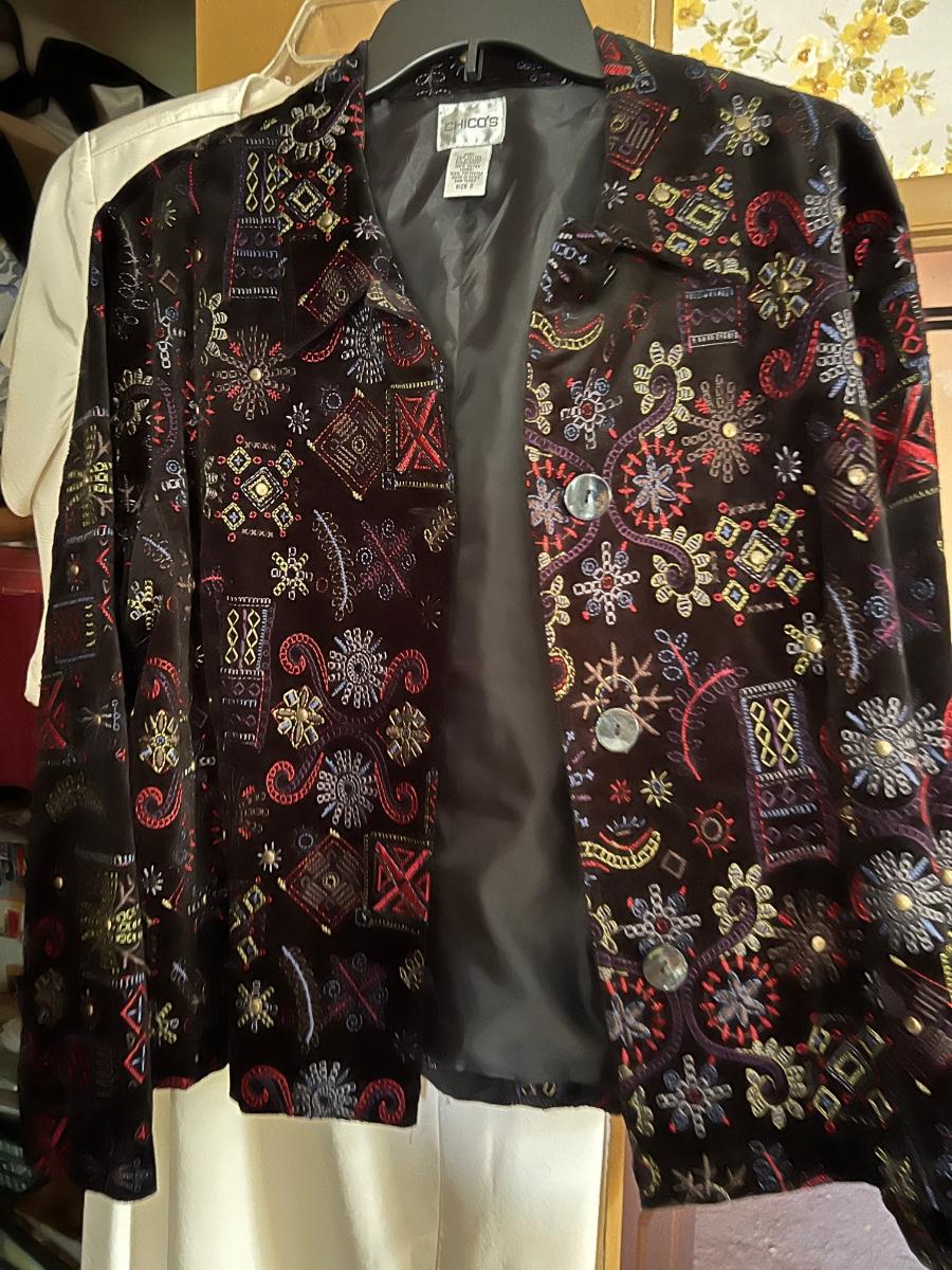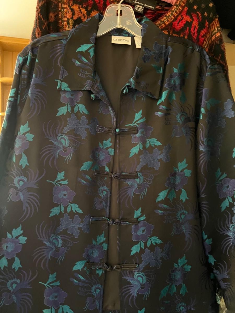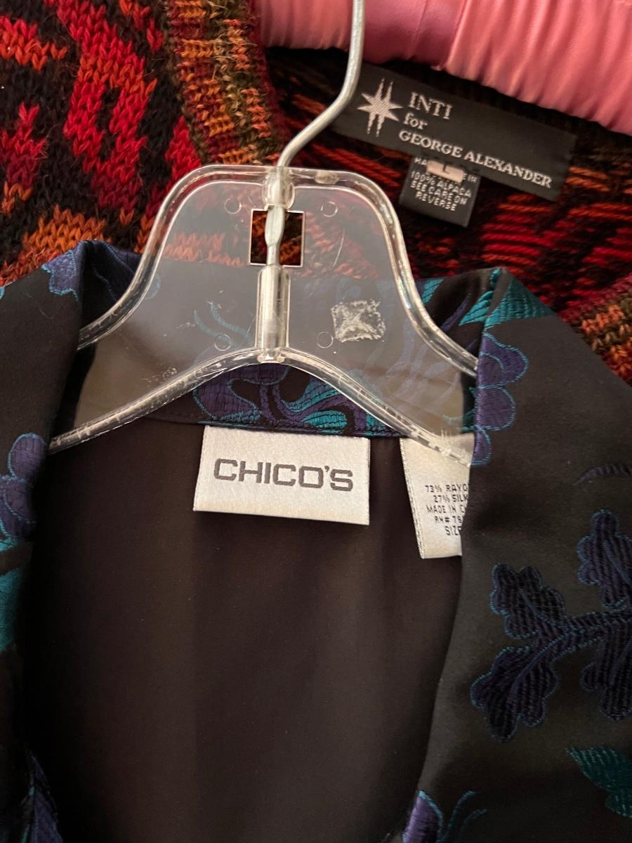 All are contemporary except one vintage top. Mix sizes small med large. Chicos blazers, silk scarves, sweaters, formal wear. Good to new with tags condition. One sweater has holes