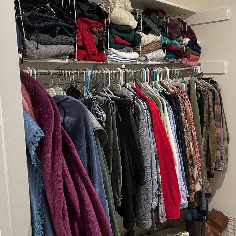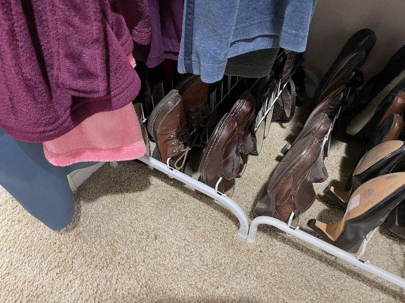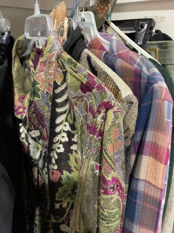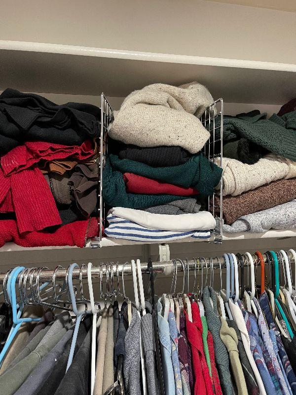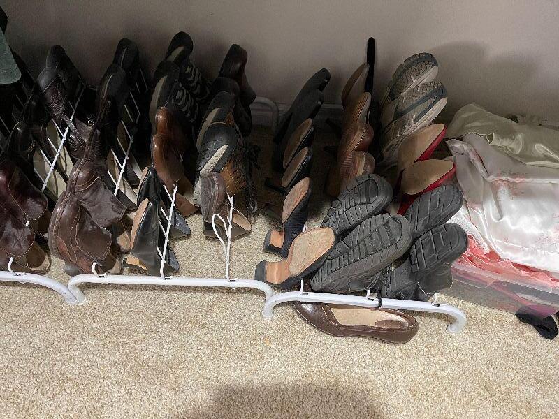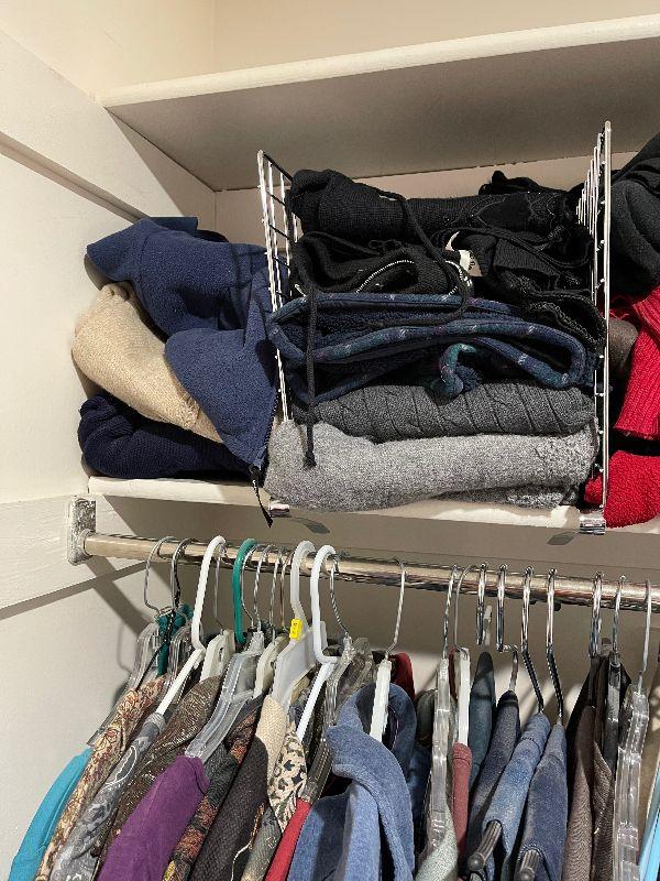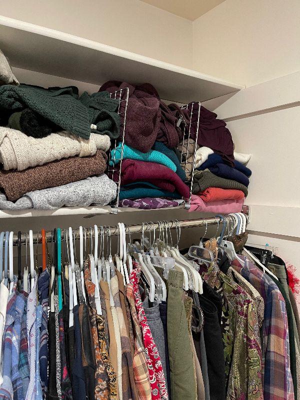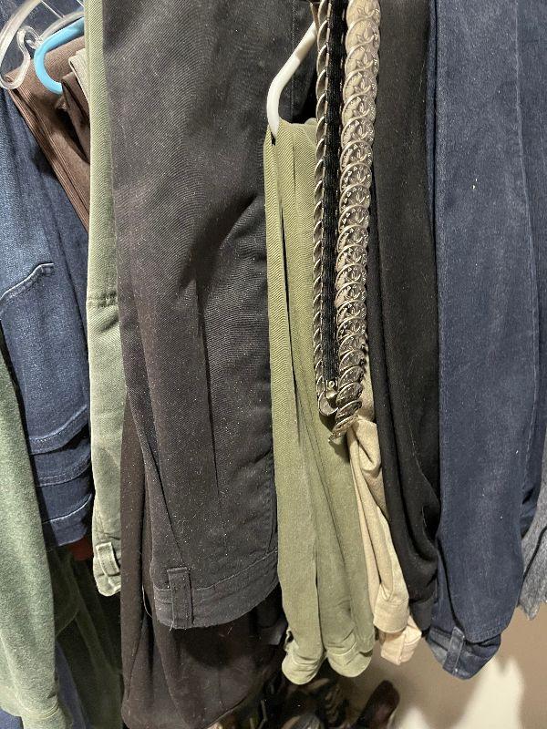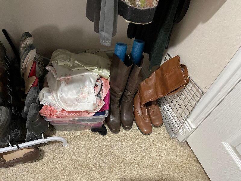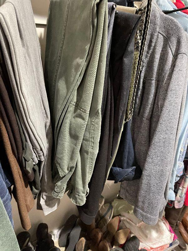 Entire closet women's clothing shoes and accessories, clothing range from medium to large pants are size 12 and 14, shoes run 7 and 7 1/2.