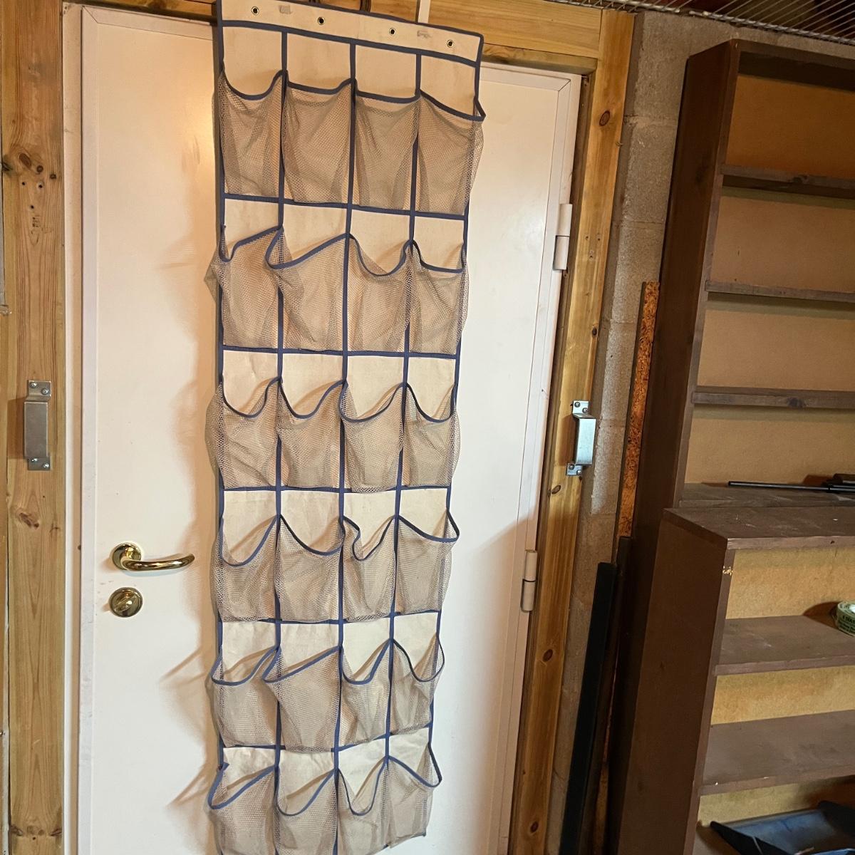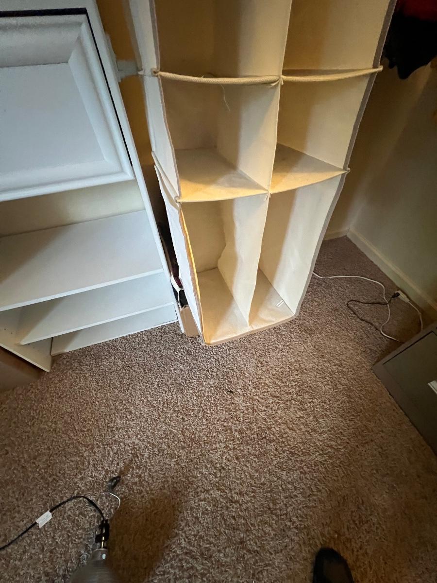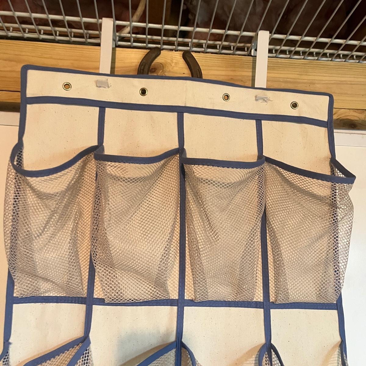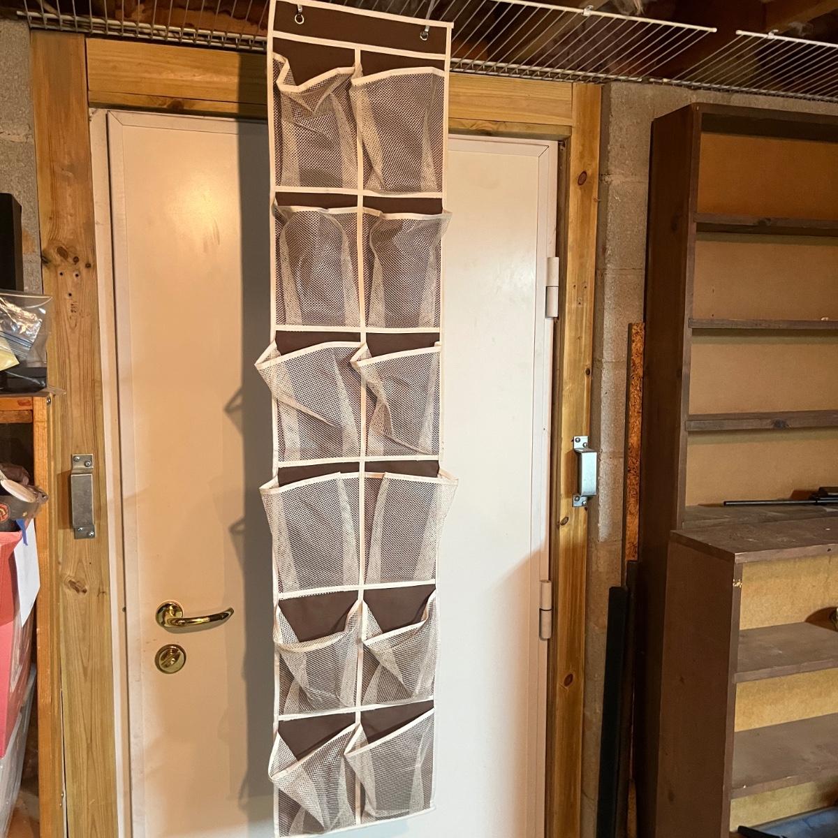 Lot includes three leopard print design bags, three hanging shoe holders, hanging storage bags, over 30 hangers and more. Also includes plastic coated wire closet shelves with the largest measuring 12” x 1.5” x 76”long.
