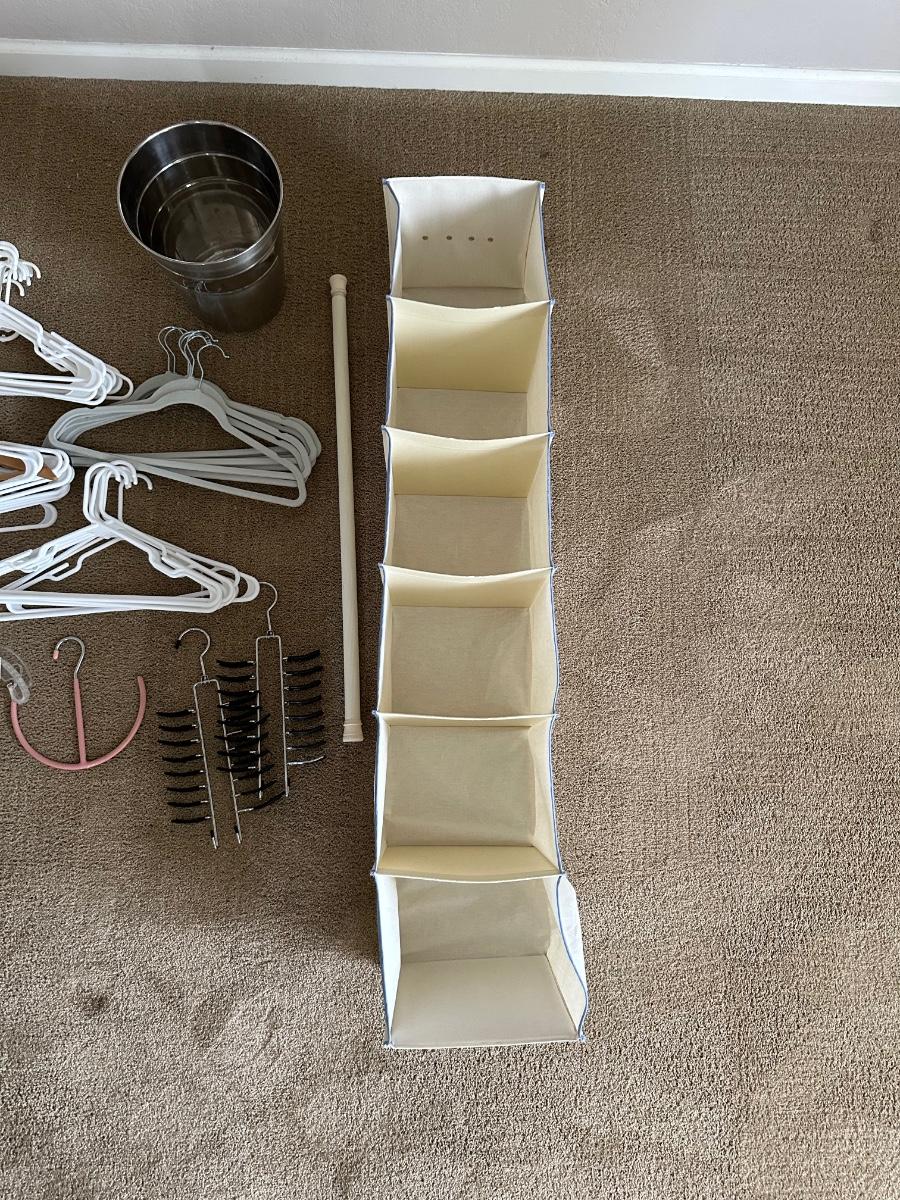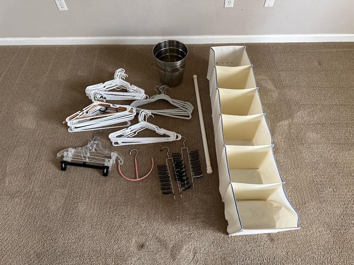 CLOSET ORGANIZER, CLOTHES HANGERS AND MORE